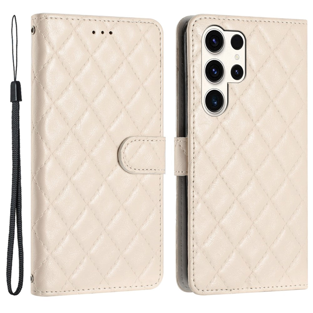 Functional rhombus wallet case for Samsung Galaxy S24 Ultra - Beige