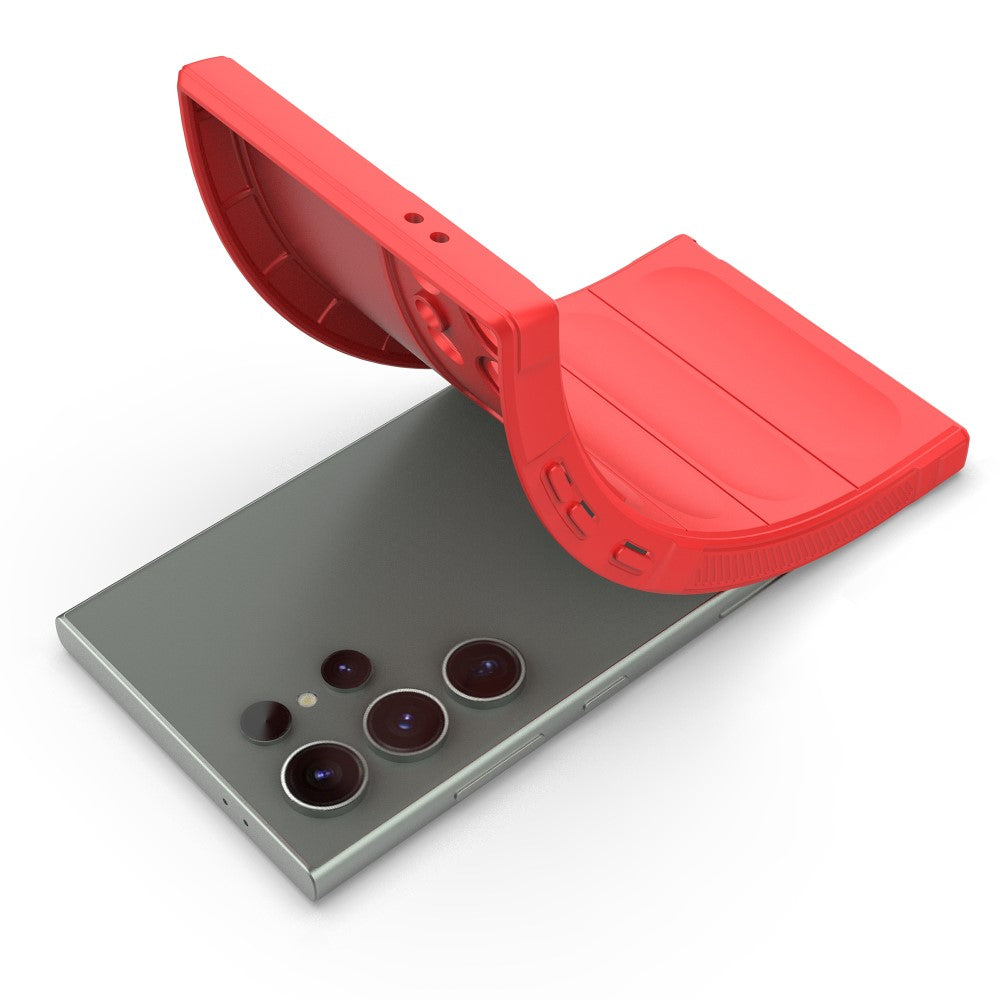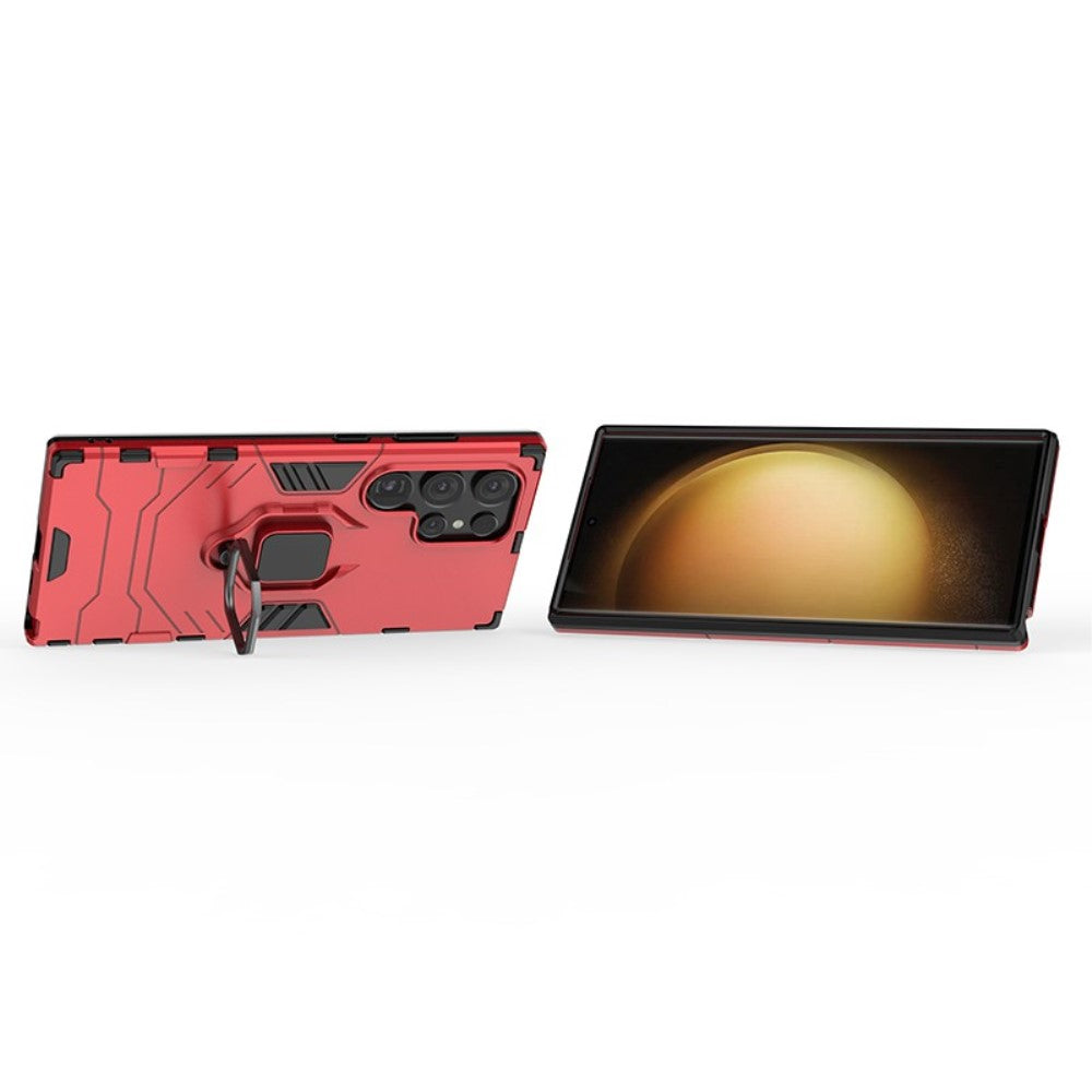 Hybrydowy pokrowiec z podpórką i uchwytem samochodowym dla Samsung Galaxy S24 Ultra - Czerwony
