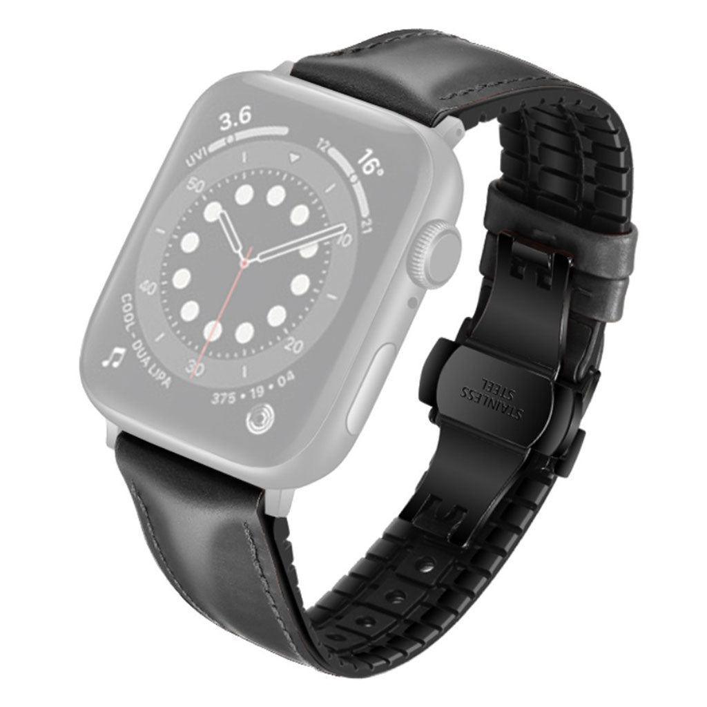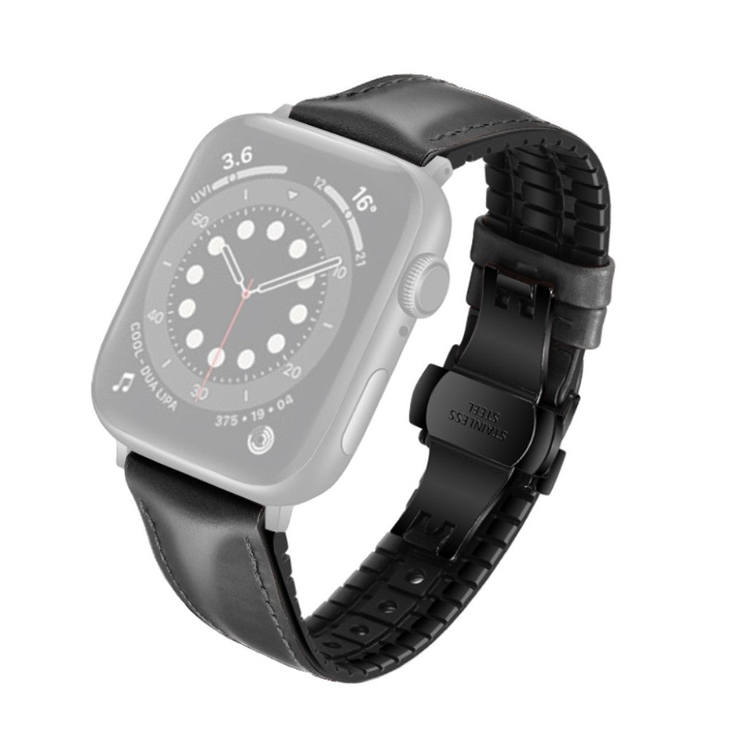 Wygodny skórzany pasek do zegarka Apple Watch Series 6 / 5 44 mm - Cały Czarny