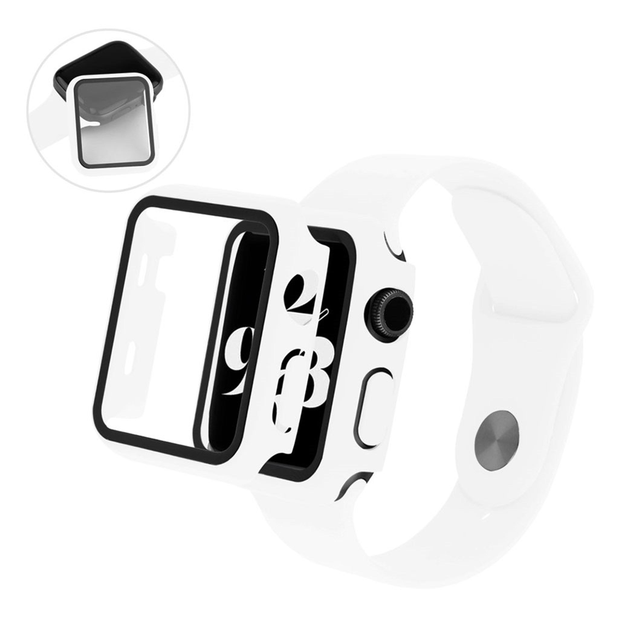 Pokrowiec Apple Watch Series 6 / 5 44 mm ze szkłem hartowanym + pasek do zegarka - Biały