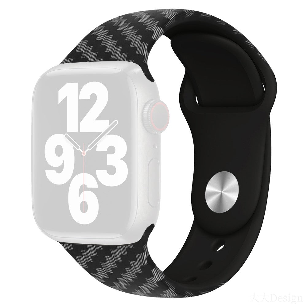 Silikonowy pasek do zegarka KALEBOL Morandi Apple Watch Series 10 42 mm - Czarny Z Włókna Węglowego