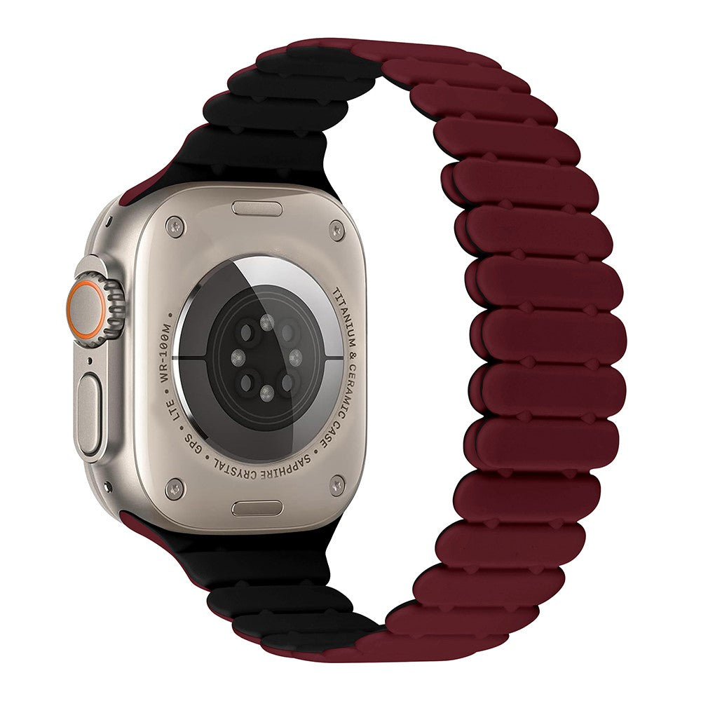 KALEBOL Silikonowy magnetyczny pasek do zegarka Apple Watch Series 10 42 mm Armor Warrior Strap - Wine Red