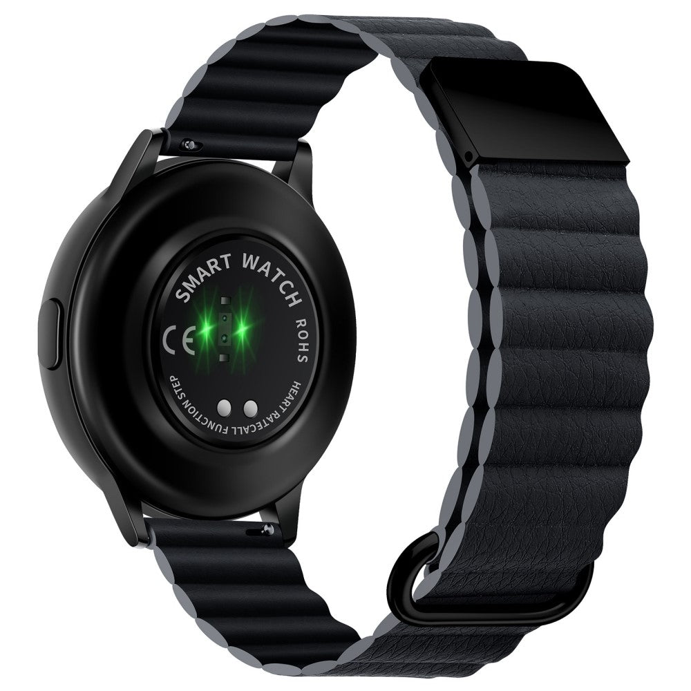 Uniwersalny skórzany pasek do zegarka 22 mm - Czarny / Czarna Klamra