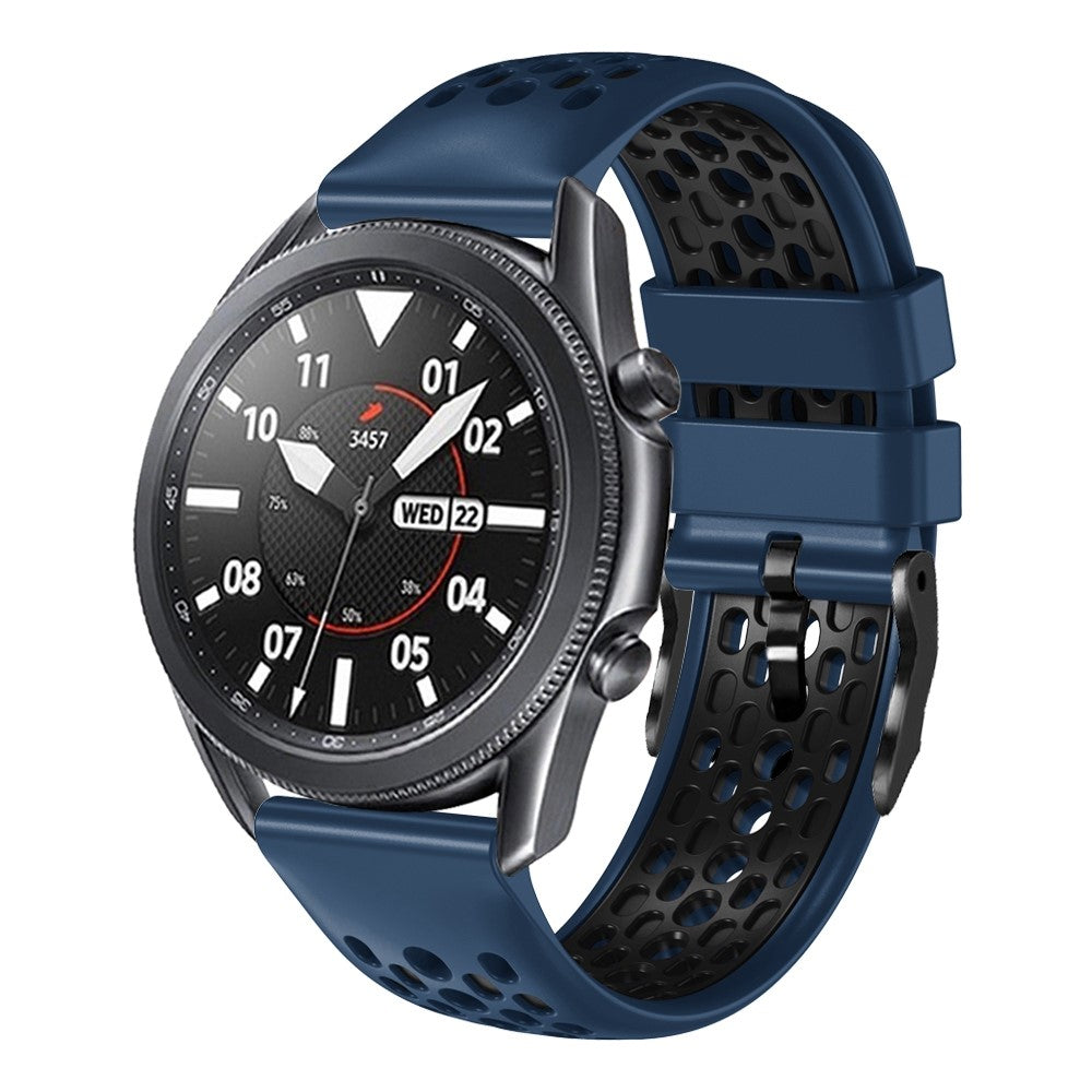 Uniwersalny, dwukolorowy, pięciorzędowy, silikonowy pasek do zegarka 22 mm - Granatowy/Czarny