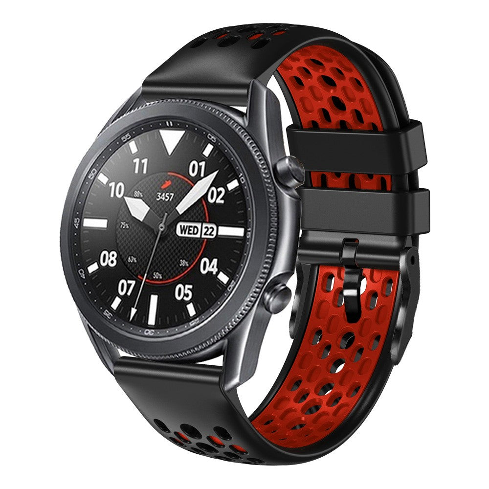 Uniwersalny, dwukolorowy, pięciorzędowy, silikonowy pasek do zegarka 22 mm - Czarny/Czerwony