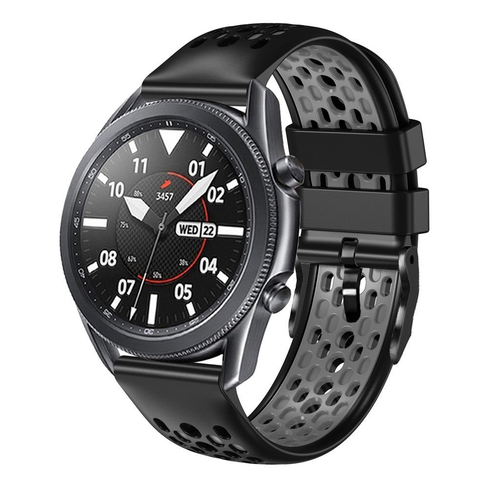 22 mm Uniwersalny, dwukolorowy, pięciorzędowy, silikonowy pasek do zegarka - Czarny/Szary