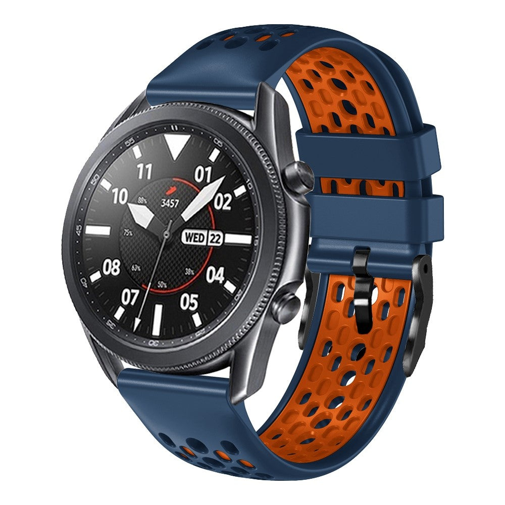 22 mm Uniwersalny, dwukolorowy, pięciorzędowy, silikonowy pasek do zegarka - Ciemnoniebieski/Pomarańczowy