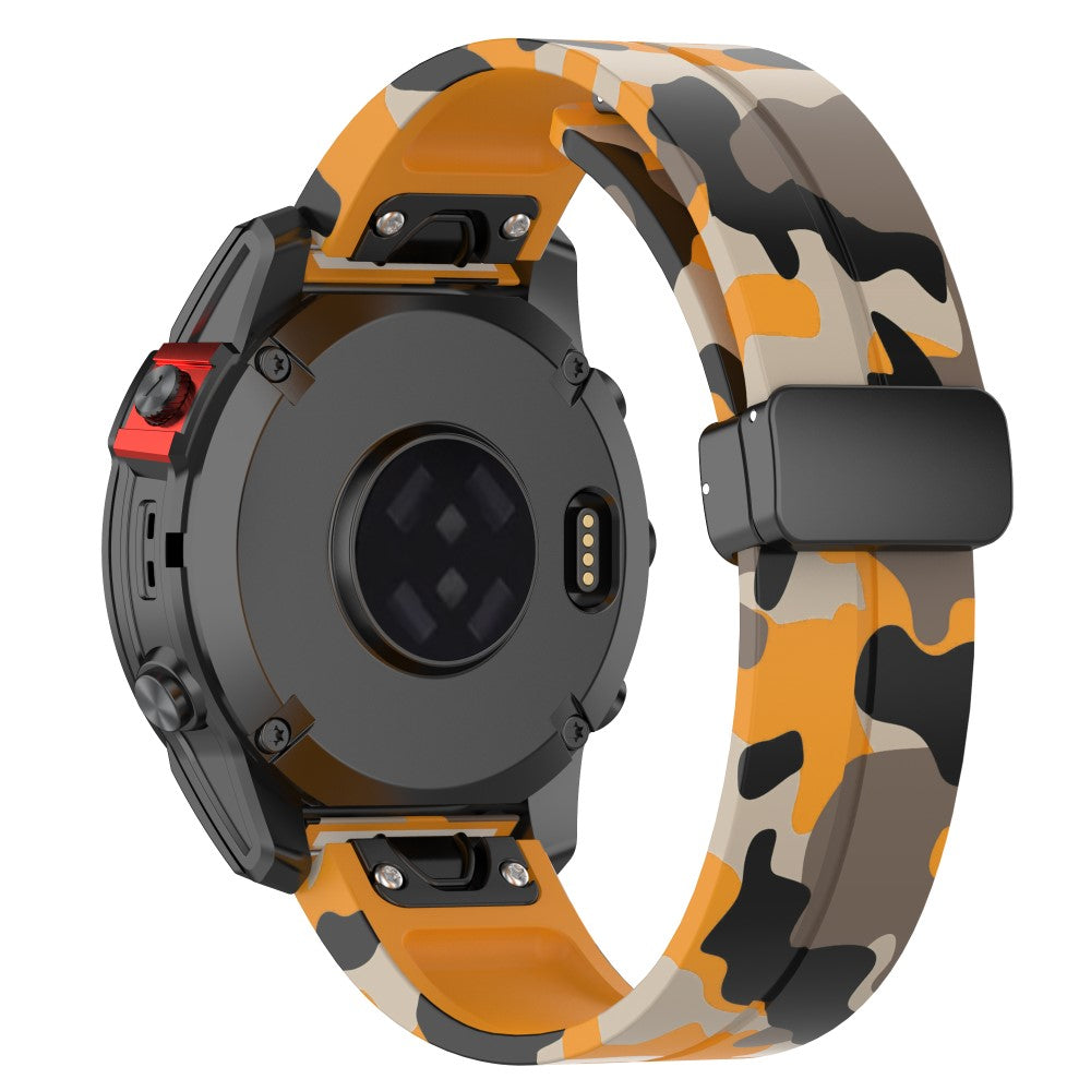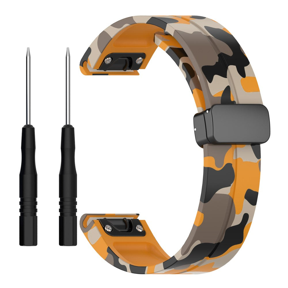 Pasek do zegarka Garmin 22 mm Quickfit z czarną klamrą i kamuflażem - Żółty Kamuflaż