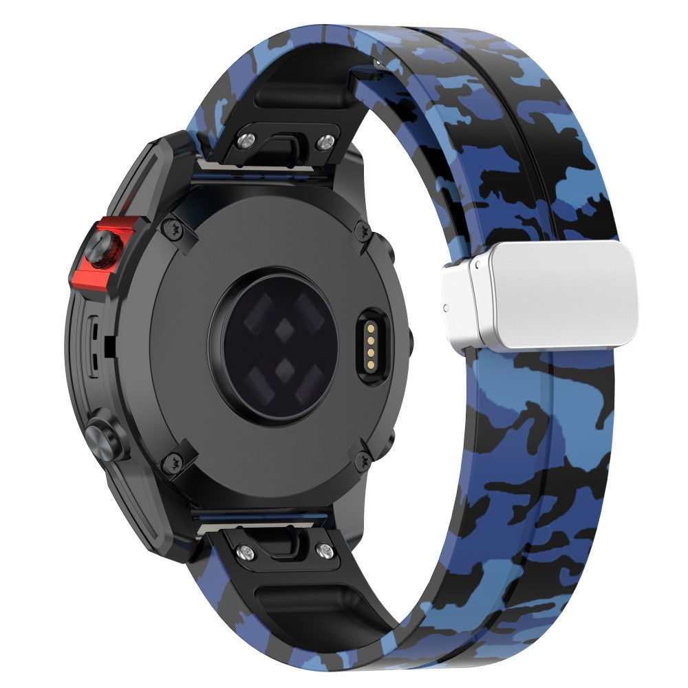 Pasek do zegarka Garmin 22 mm Quickfit z czarną klamrą i kamuflażem - Camo Blue