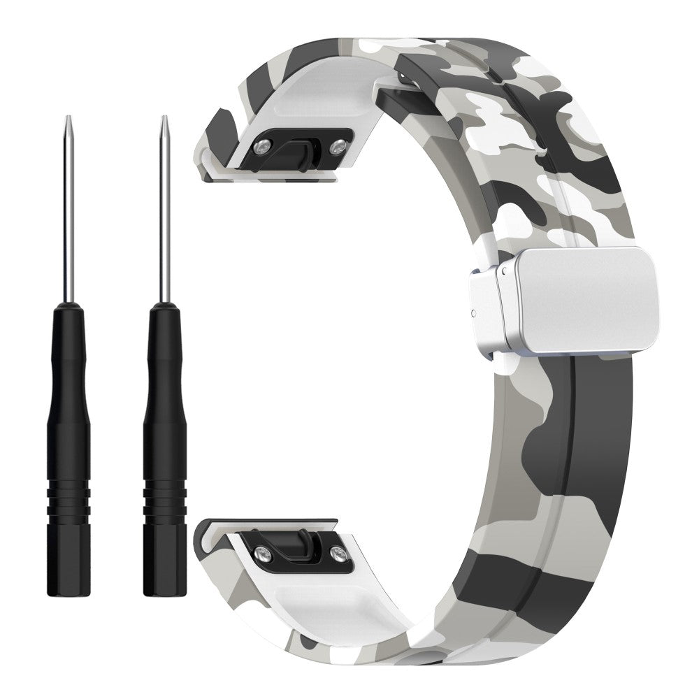 Pasek do zegarka Garmin Quickfit 22 mm z elastyczną klamrą w kolorze srebrnym - Camo White