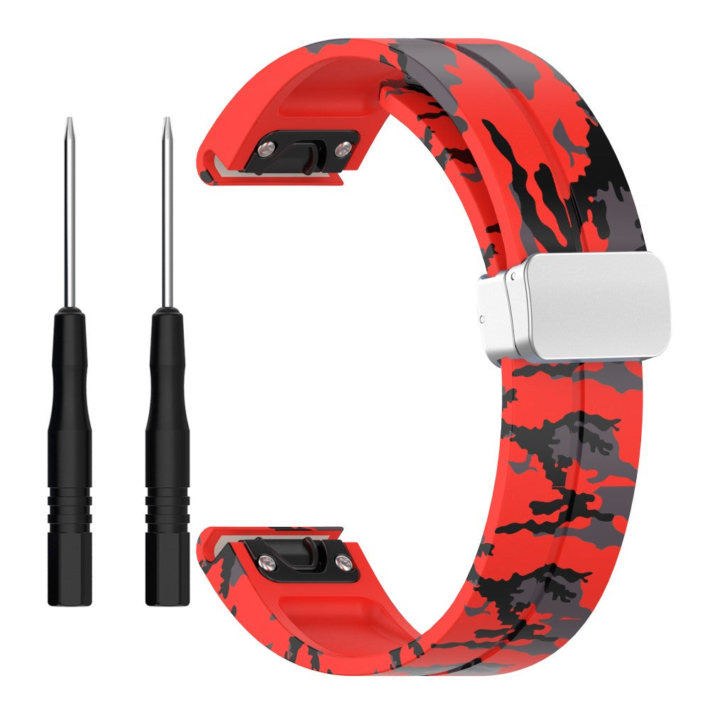 Pasek do zegarka Garmin Quickfit 22 mm z elastyczną srebrną klamrą - Camo Red