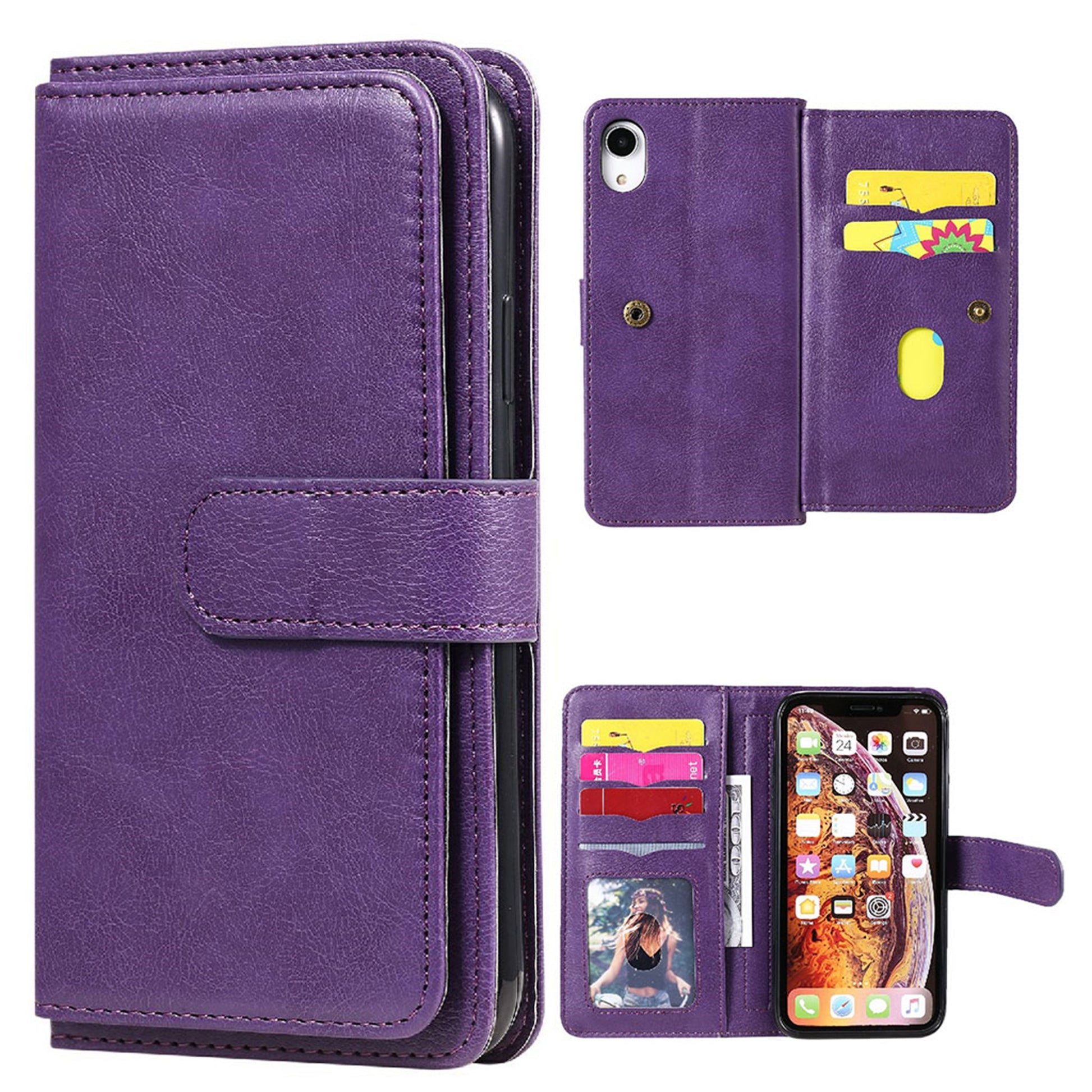 10-kieszeniowe etui portfelowe do iPhone Xr - Fioletowe