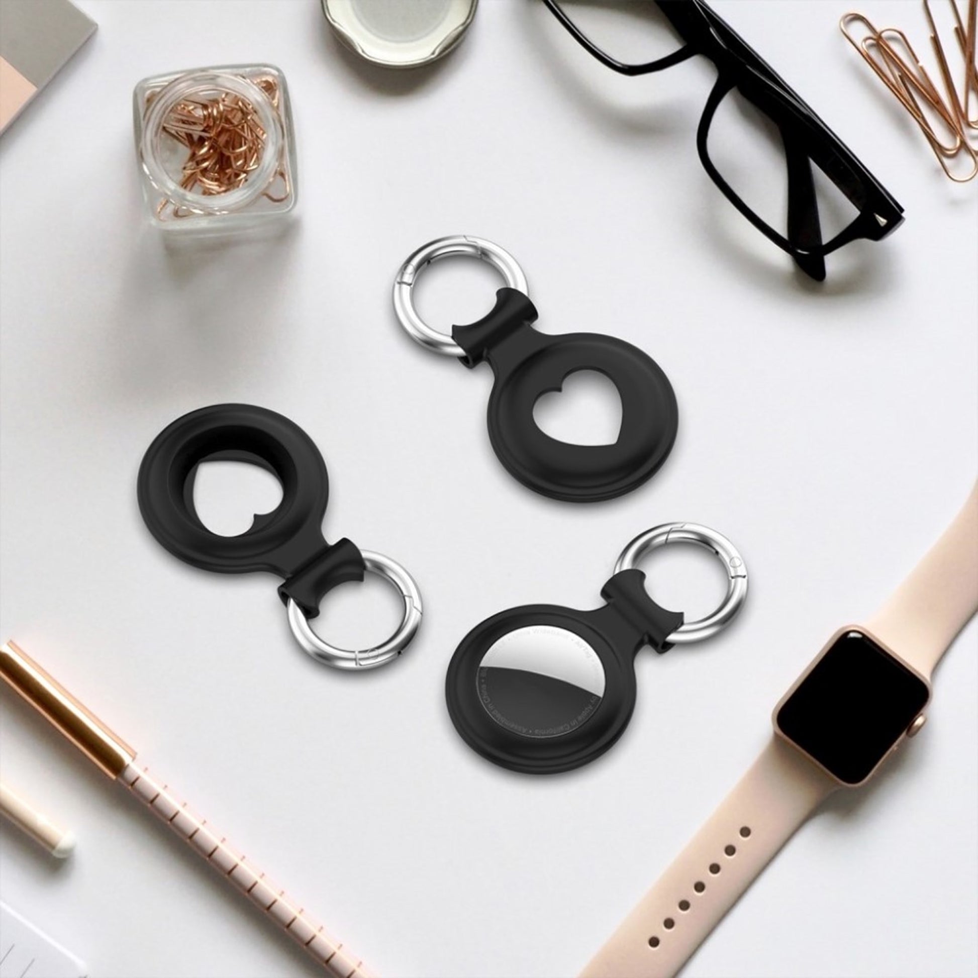 Silikonowa osłona AirTags w kształcie serca ze sprężynową klamrą - Black