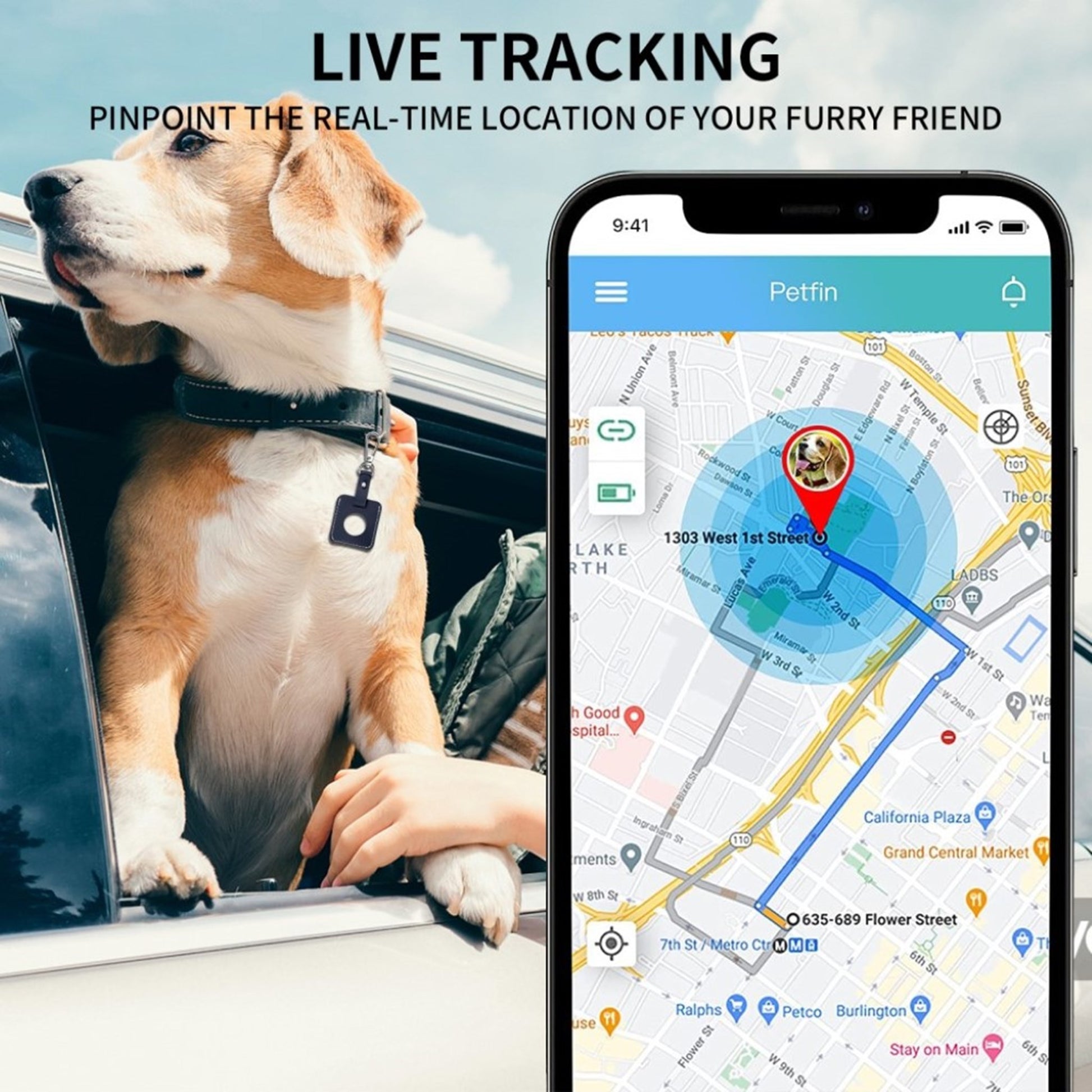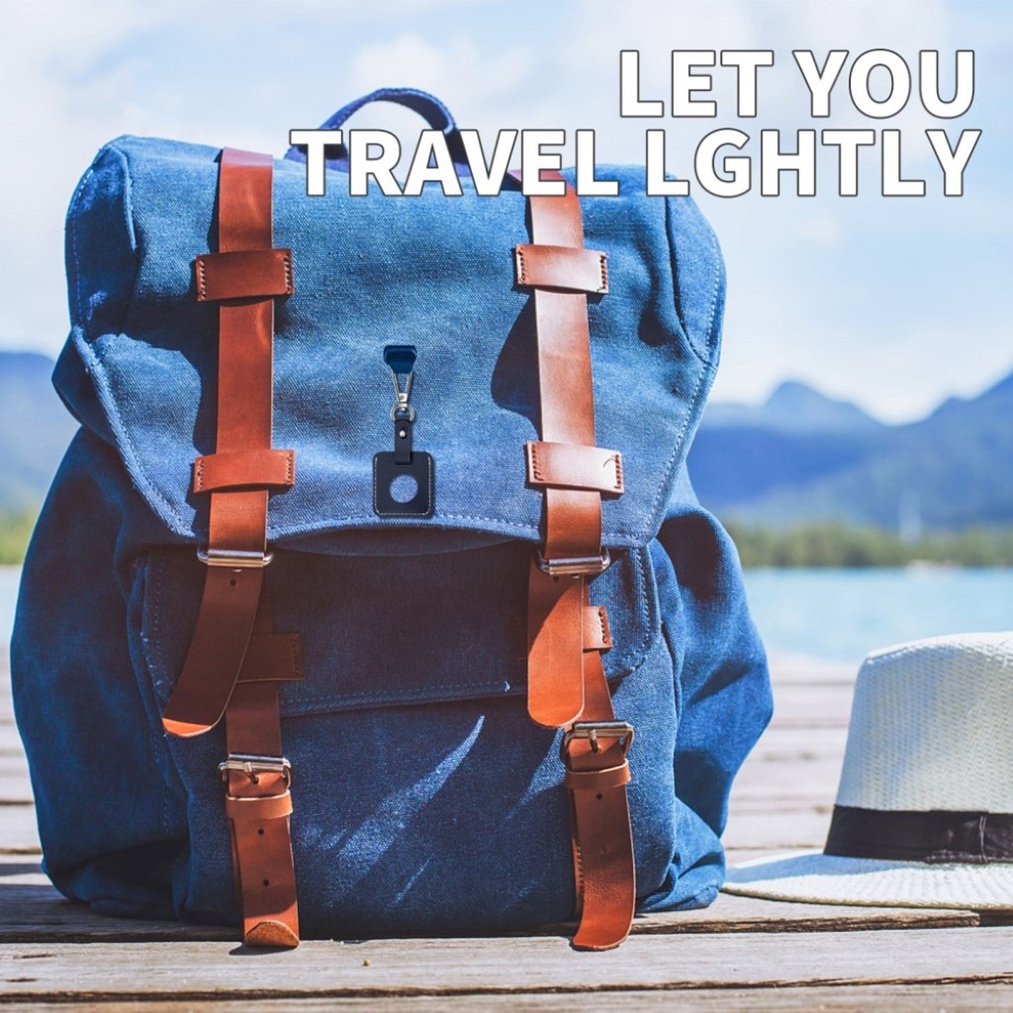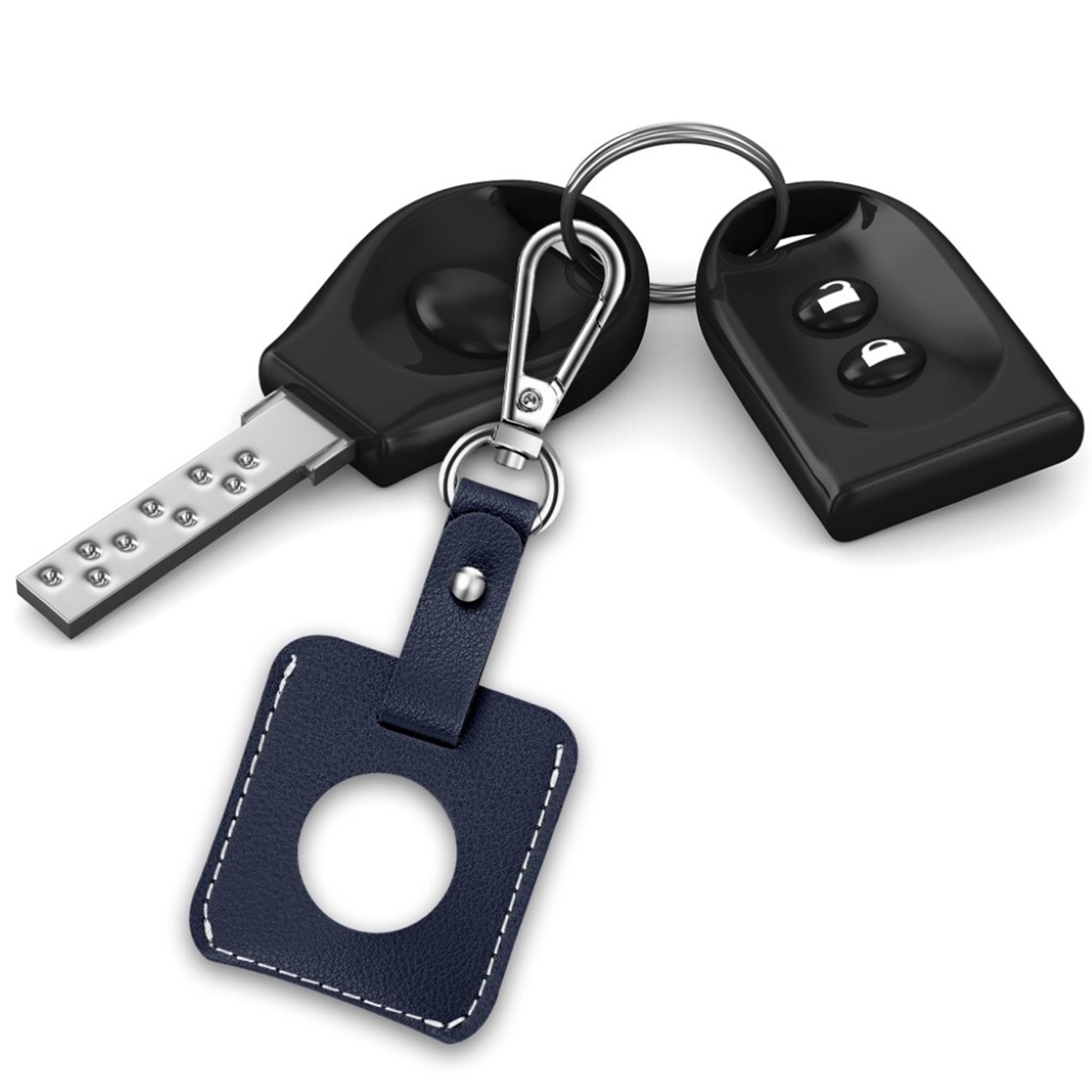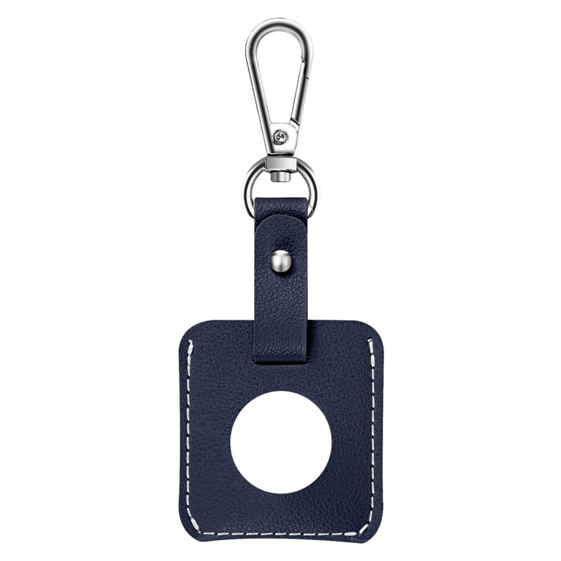 Skórzany pokrowiec AirTags w kształcie kwadratu z kółkiem na klucze - Dark Blue