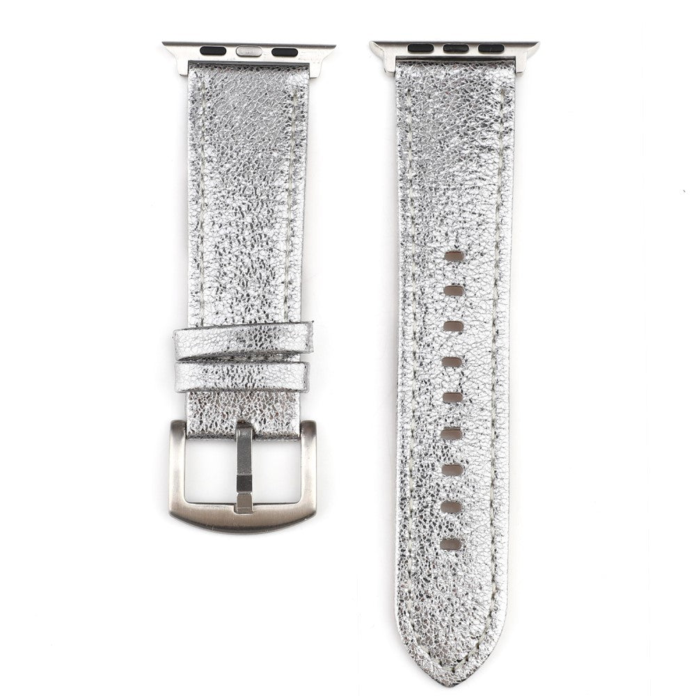Apple Watch Series 8 (45 mm) / Watch Ultra błyszczący pasek z prawdziwej skóry - Srebrny