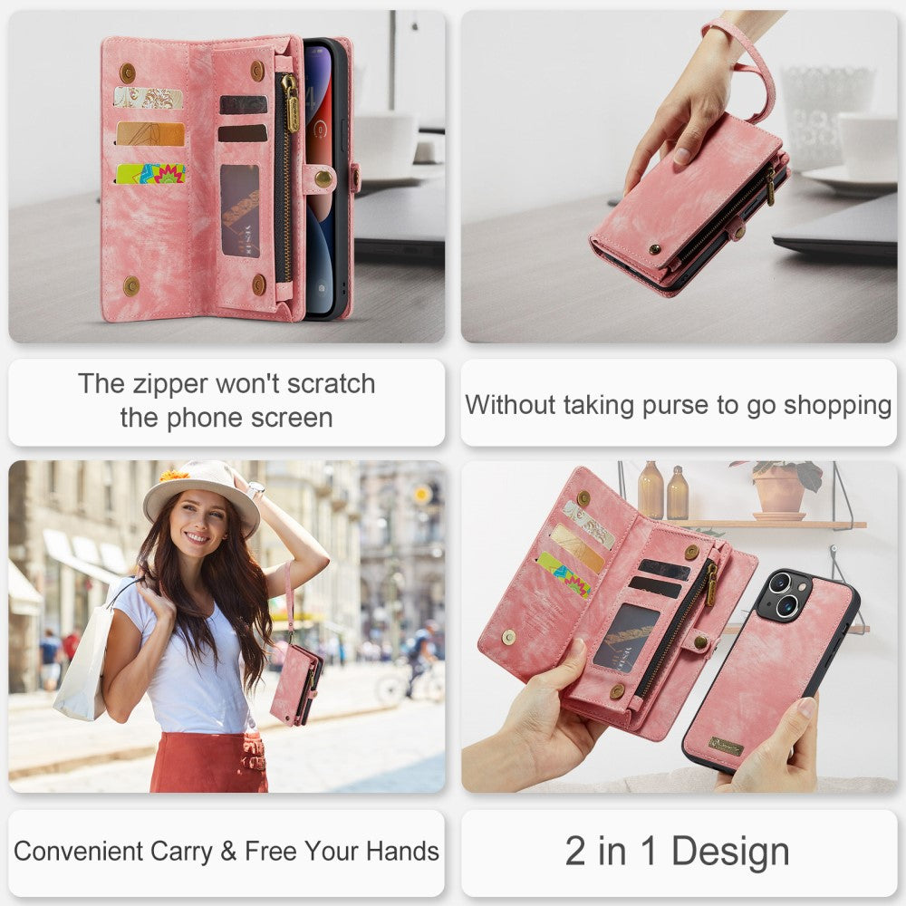 CaseMe iPhone 15 Plus Zipper Wallet - Pink