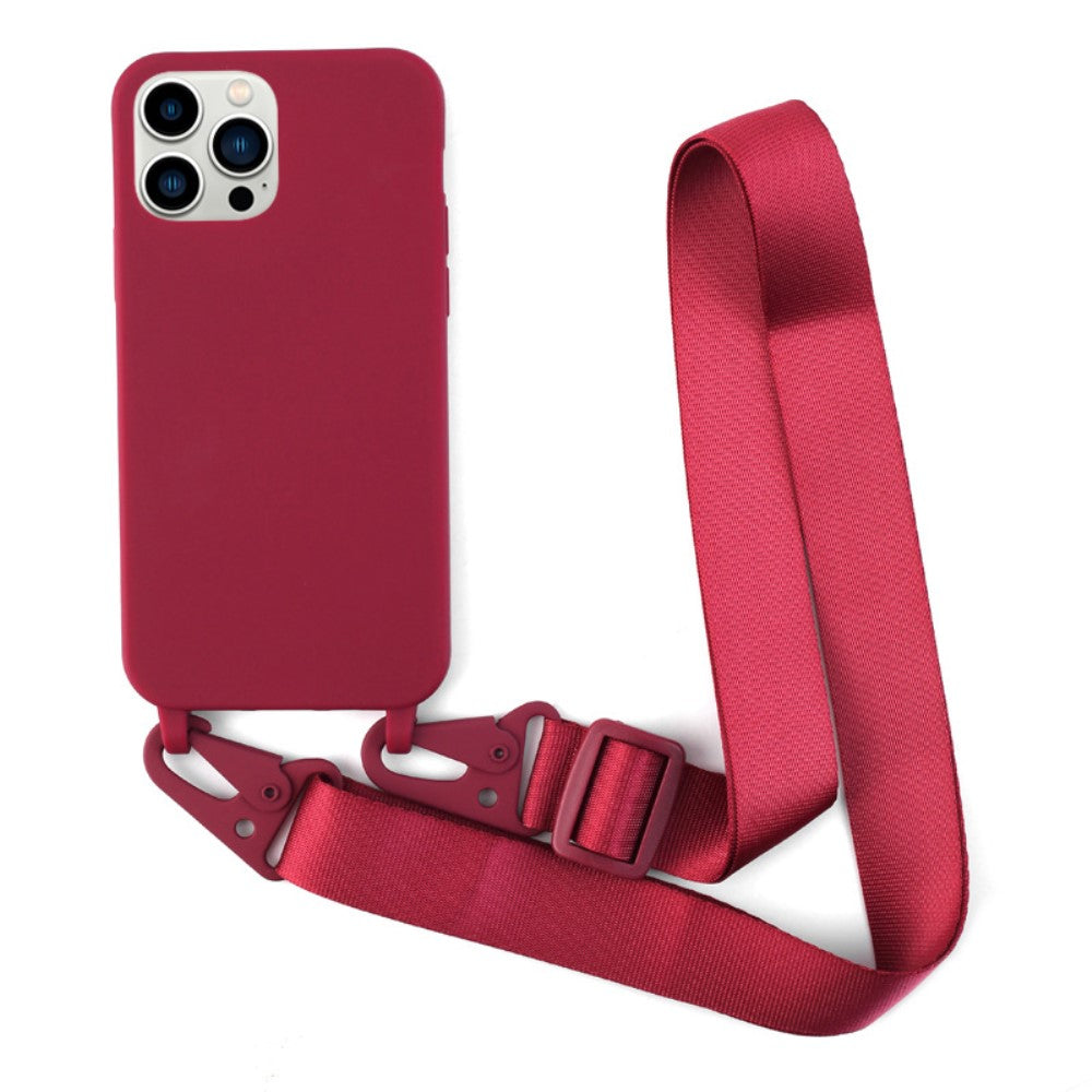 Cienkie etui TPU z matowym wykończeniem i regulowanym paskiem do iPhone'a 13 Pro Max - Czerwone