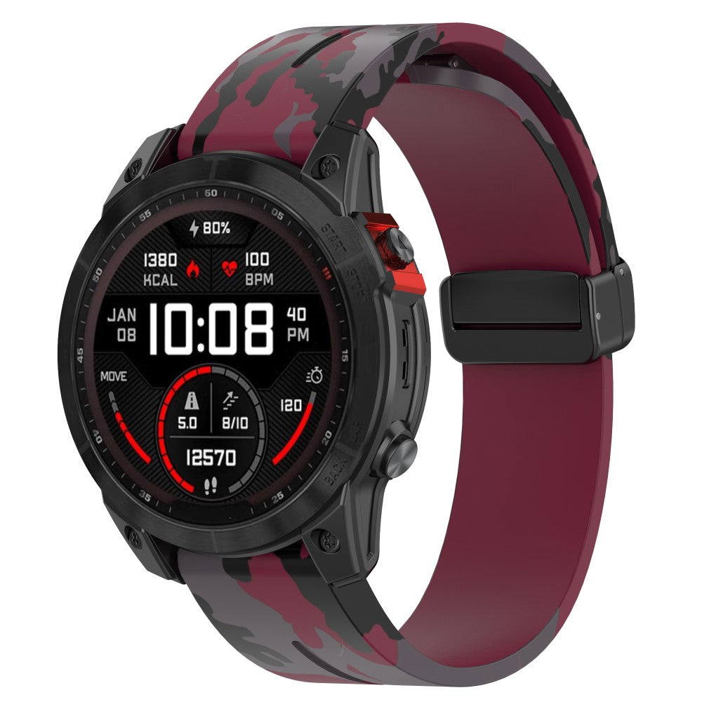 Elastyczny pasek do zegarka Garmin 26mm Quickfit Universal Black Buckle Watch Band - Camo Wine Red