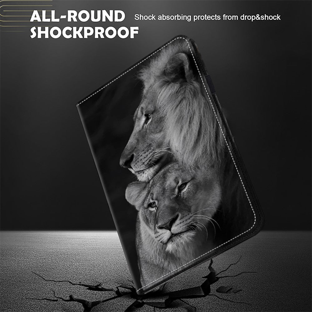 Etui Lenovo Tab Plus Flip Stand Leather Tablet Cover Pattern Printed - Couple Lions