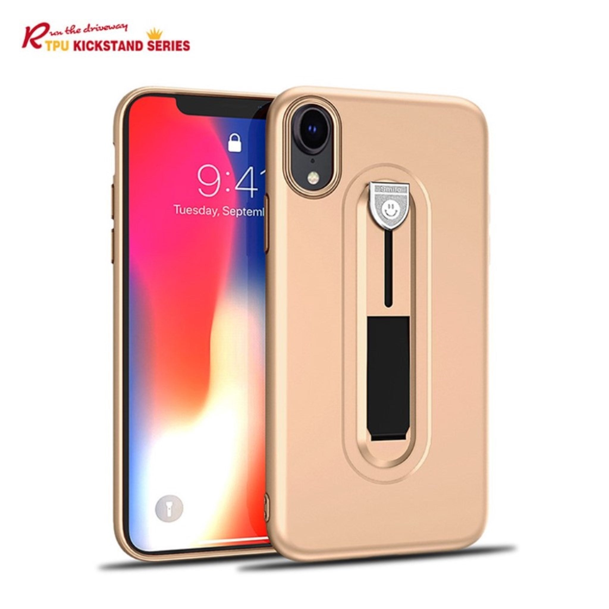 Etui matowe z podpórką do iPhone'a Xr - Złote