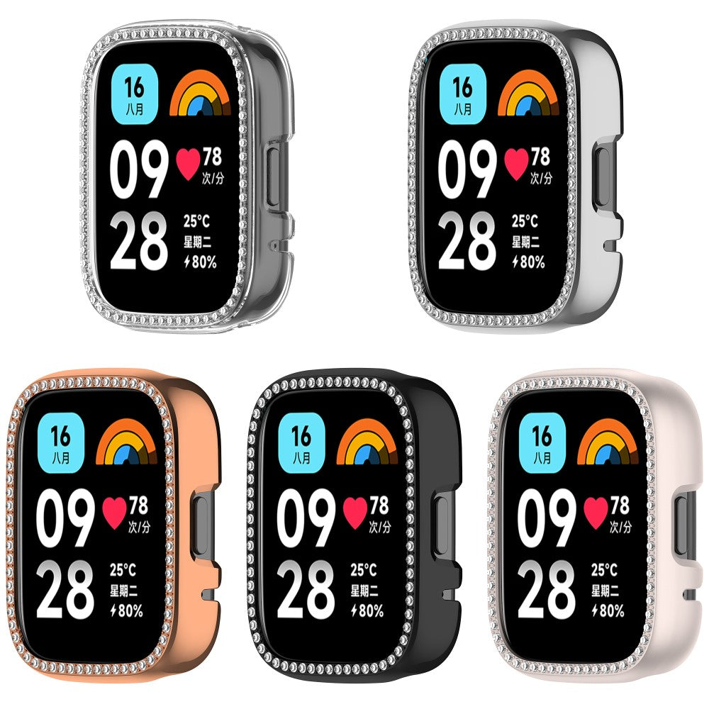 Etui na zegarek Xiaomi Redmi Watch 3 Active / Watch 3 Lite z kryształkami, pustą konstrukcją i galwanizowaną powłoką PC - Czarne