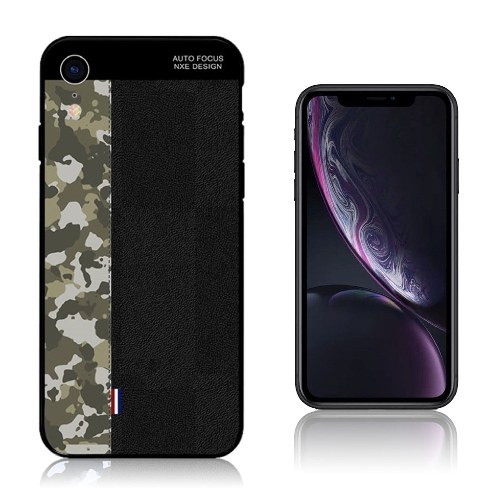 Etui NXE na iPhone Xr z wzorem kamuflażu - Zielony Kamuflaż Wojskowy / Czarny