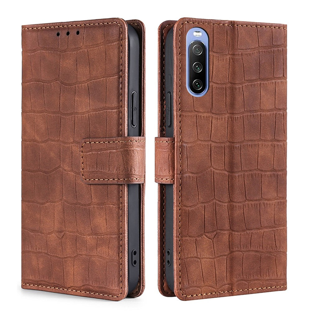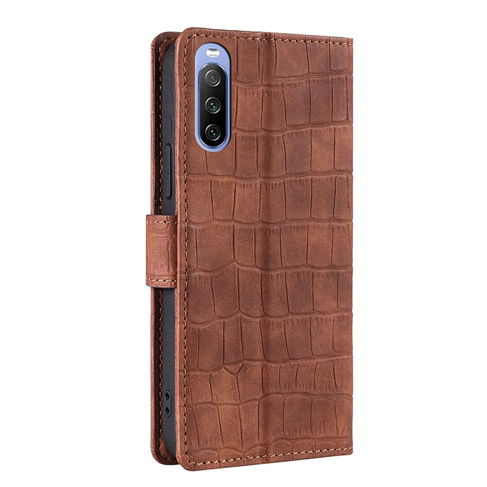 Etui skórzane z fakturą krokodyla dla Sony Xperia 10 III Lite / 10 III 5G - Brązowy