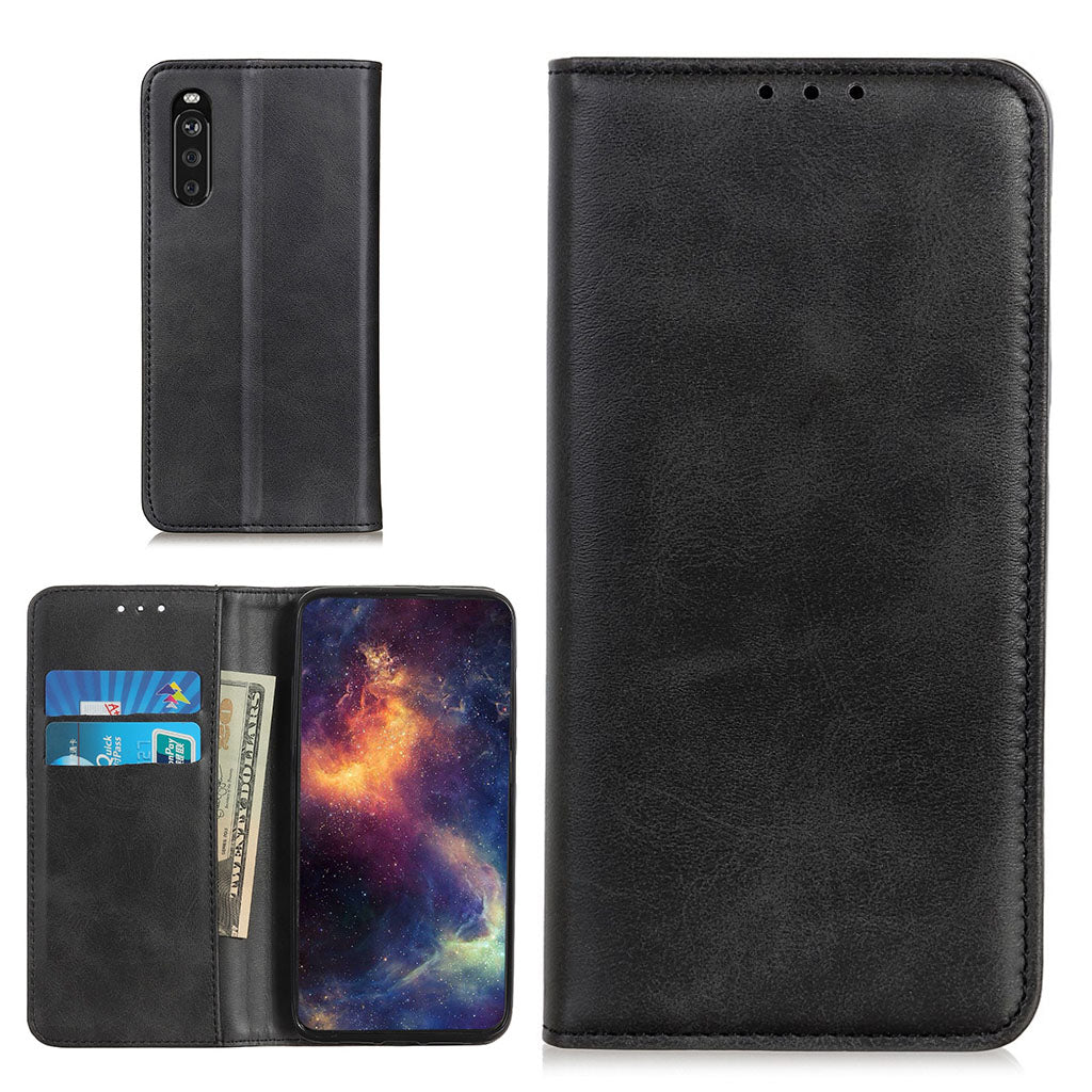 Etui typu portfel z prawdziwej skóry dla Sony Xperia 10 III - Czarny