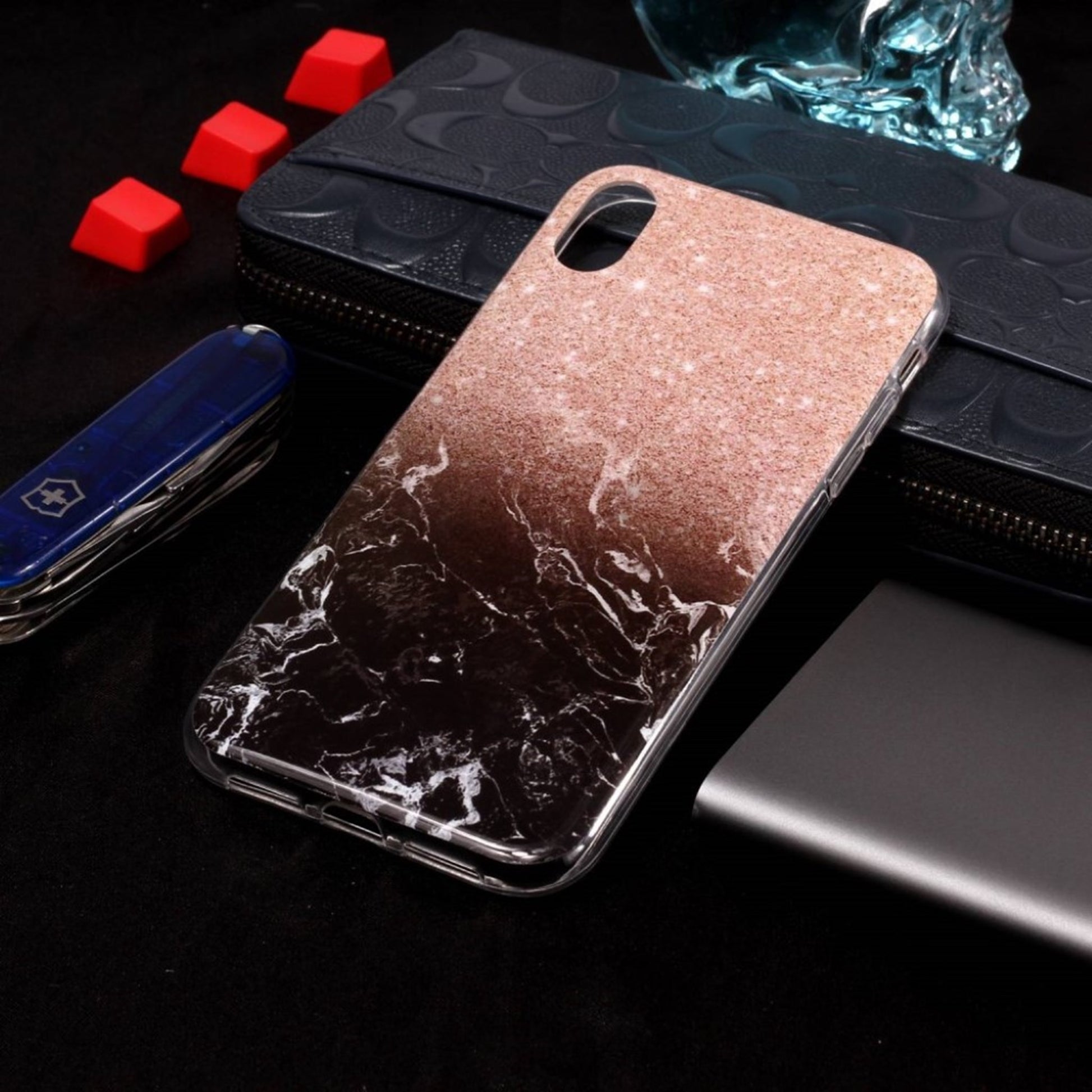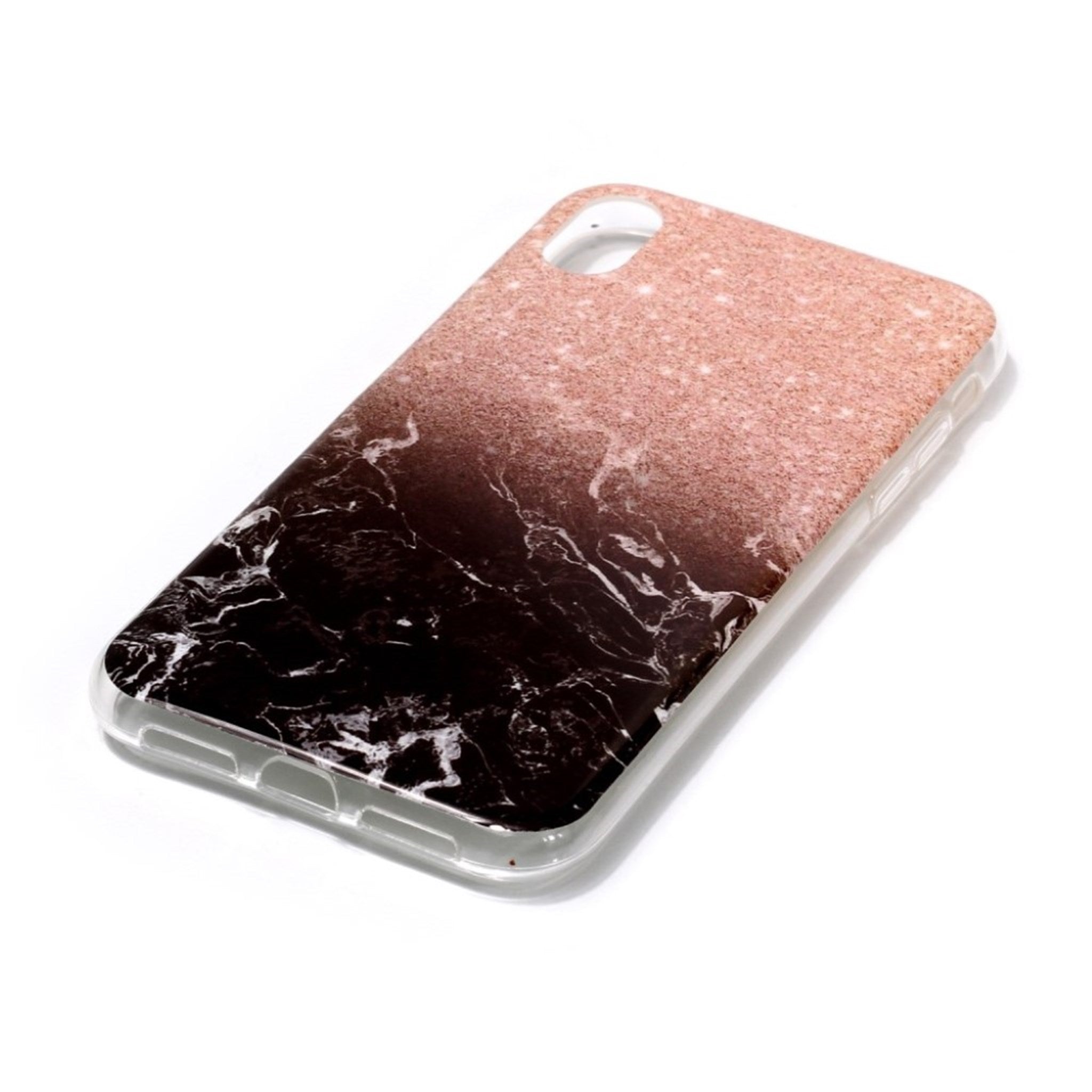 Etui z nadrukiem na iPhone Xr - Czarny Marmur / Błyszczący Puder