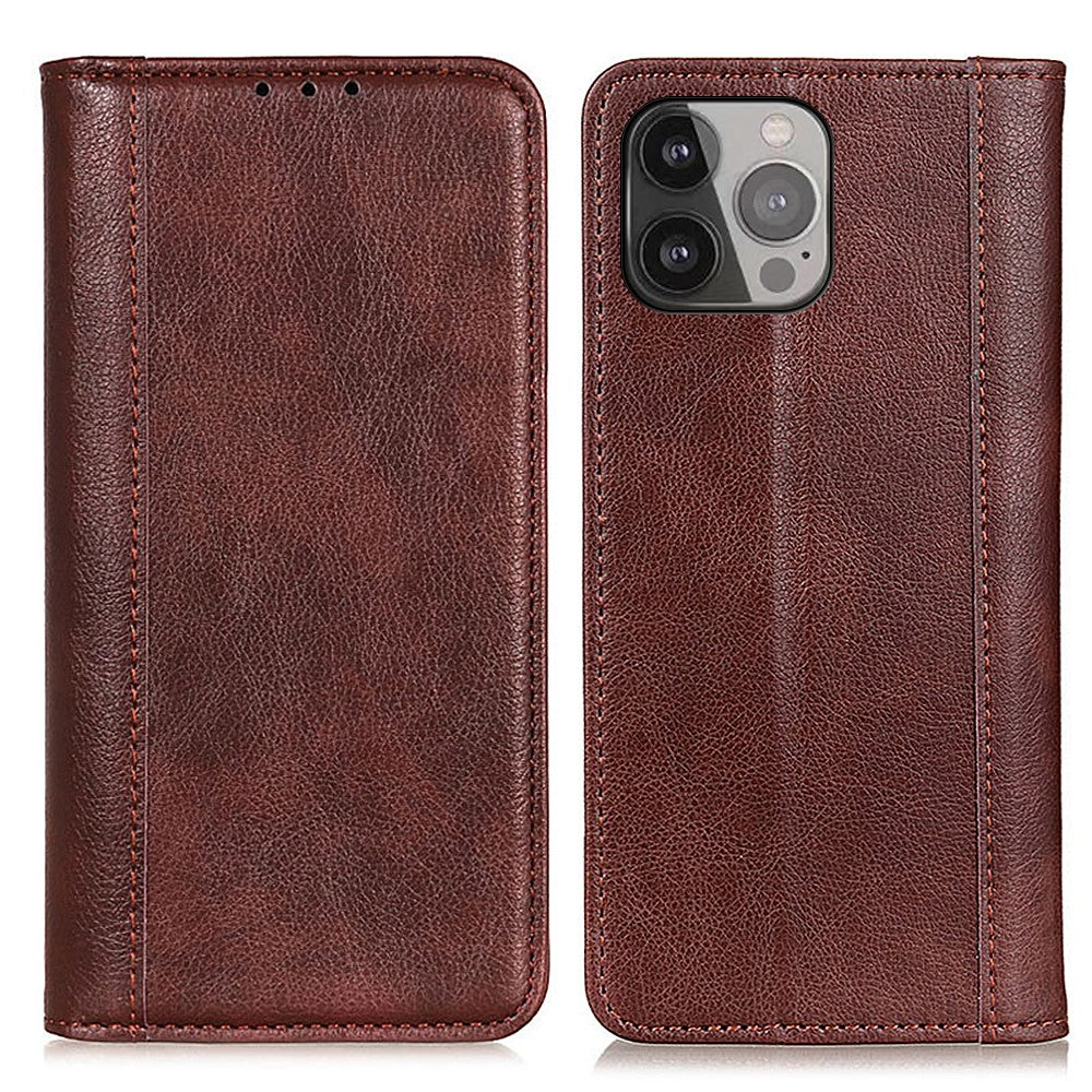 Etui ze skóry naturalnej z magnetycznym zamknięciem do iPhone'a 13 Pro Max - Brązowe