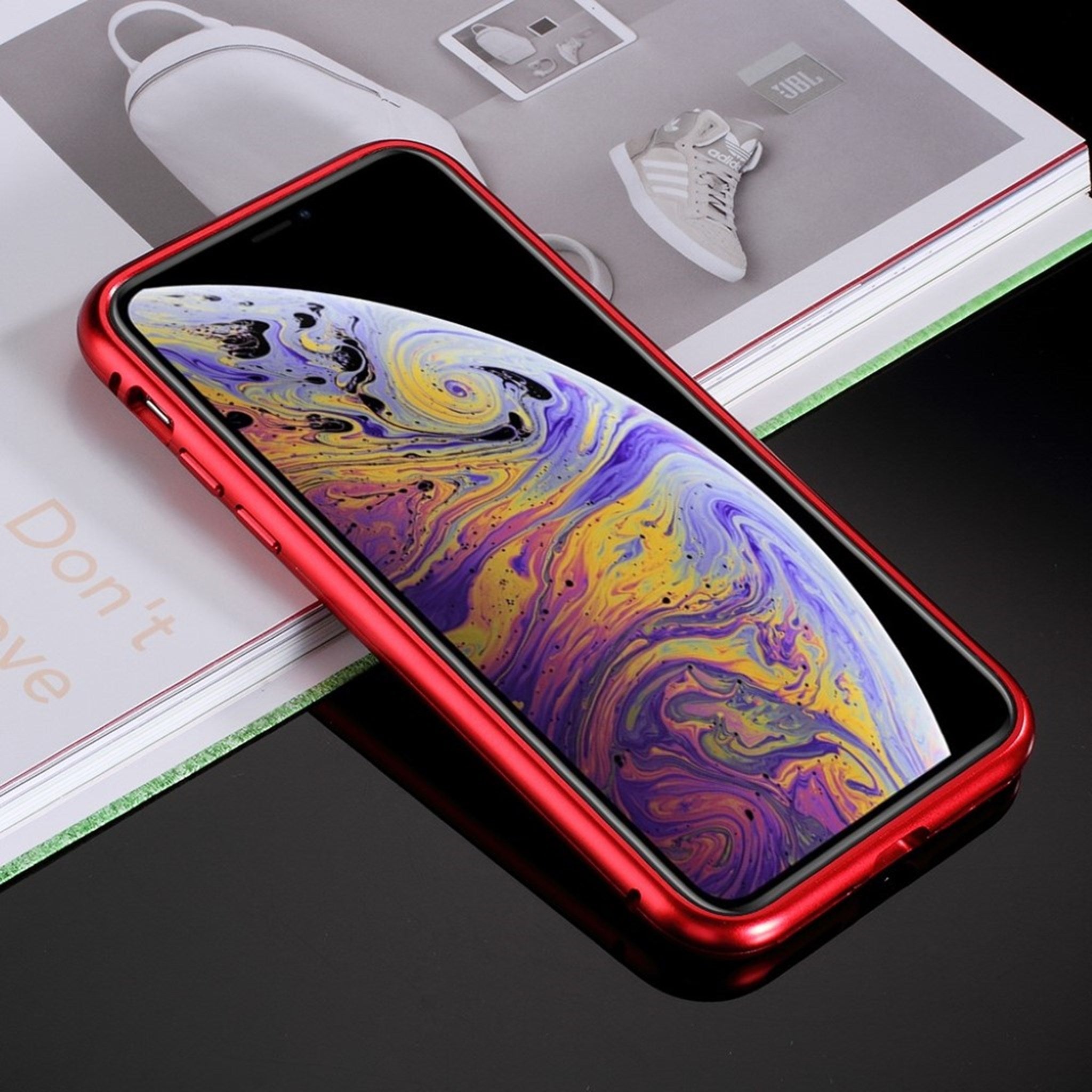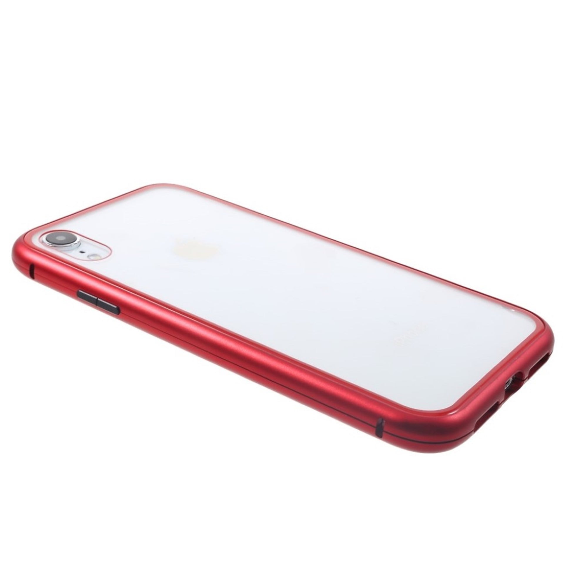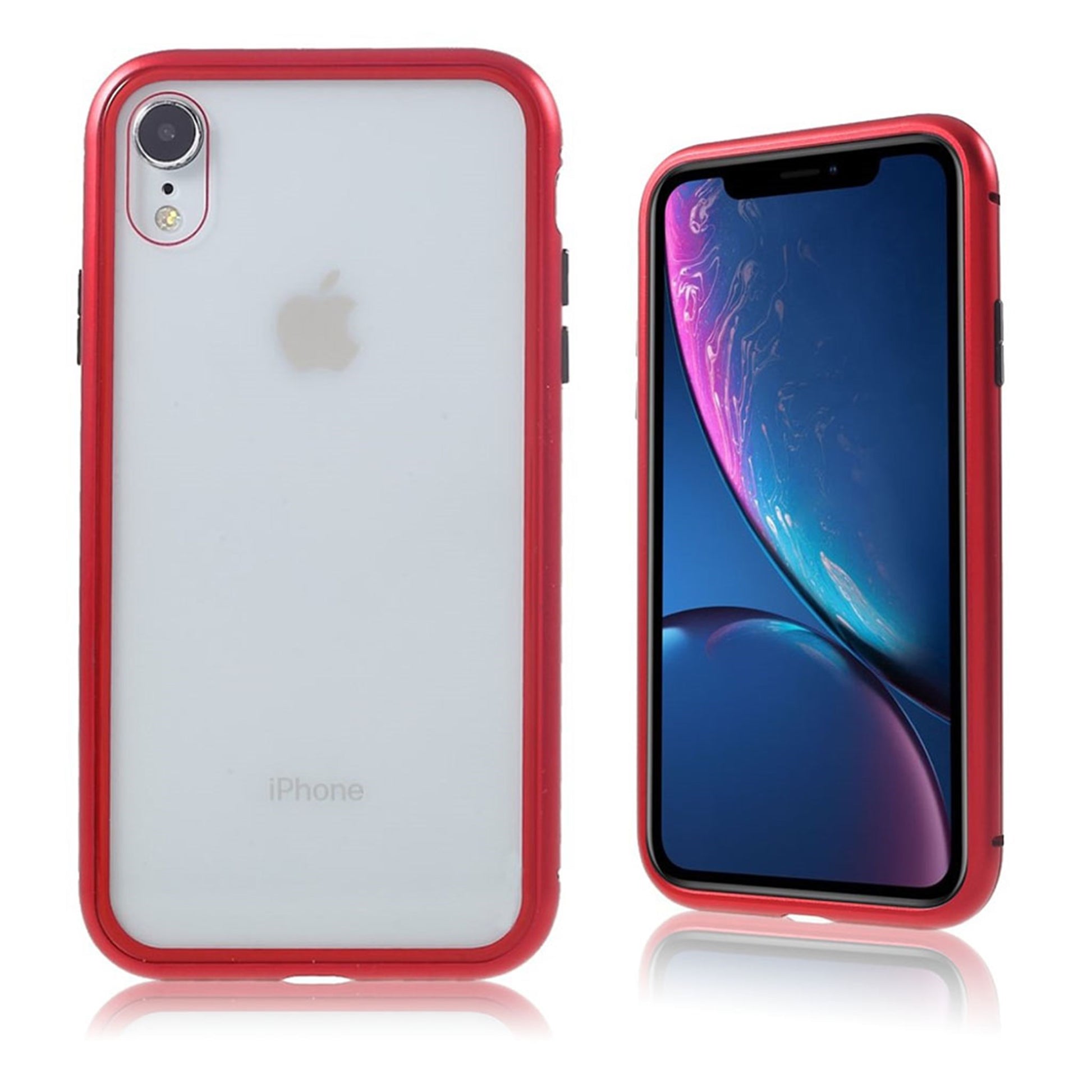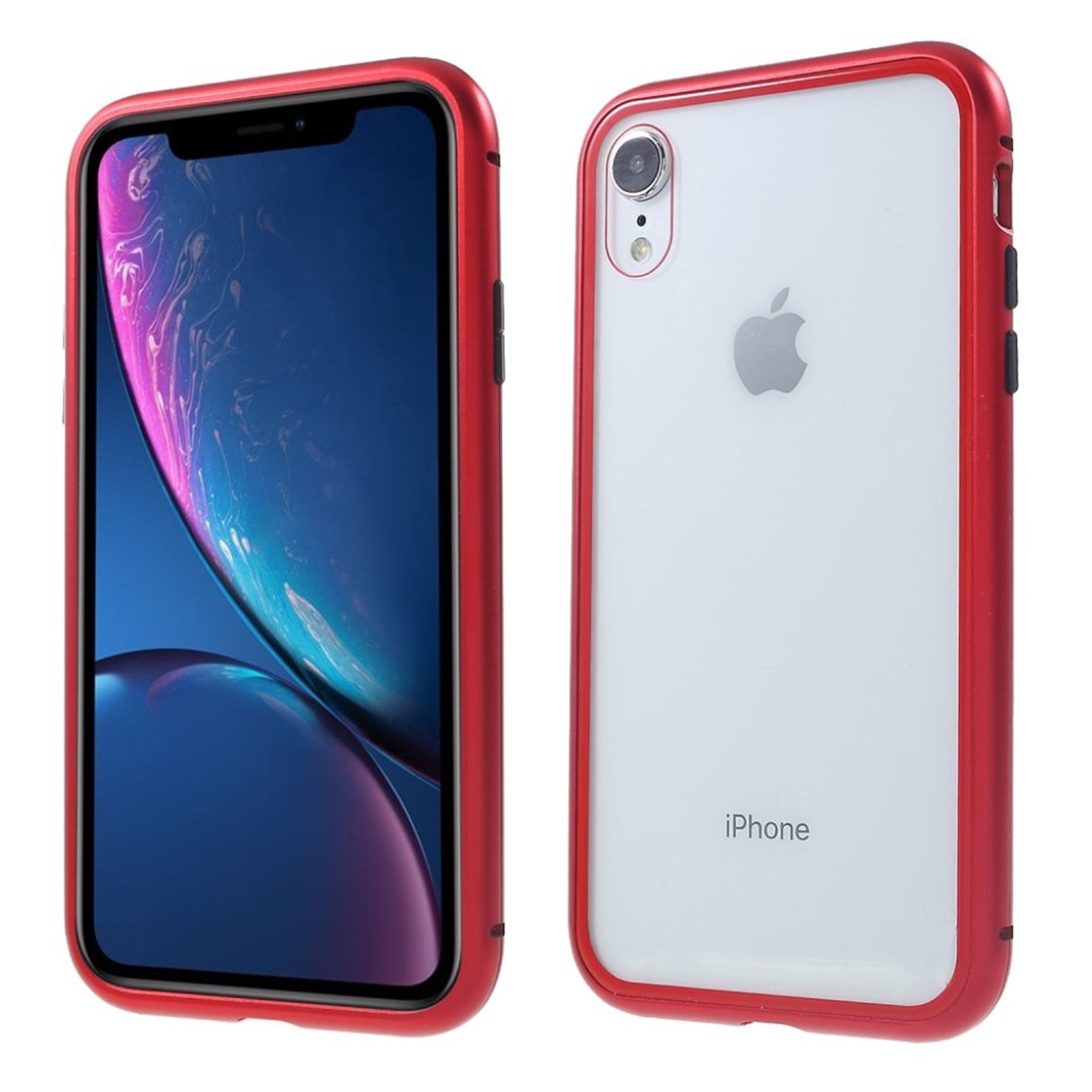 Etui ze szkła hartowanego z metalową ramką do iPhone'a Xr - Czerwone