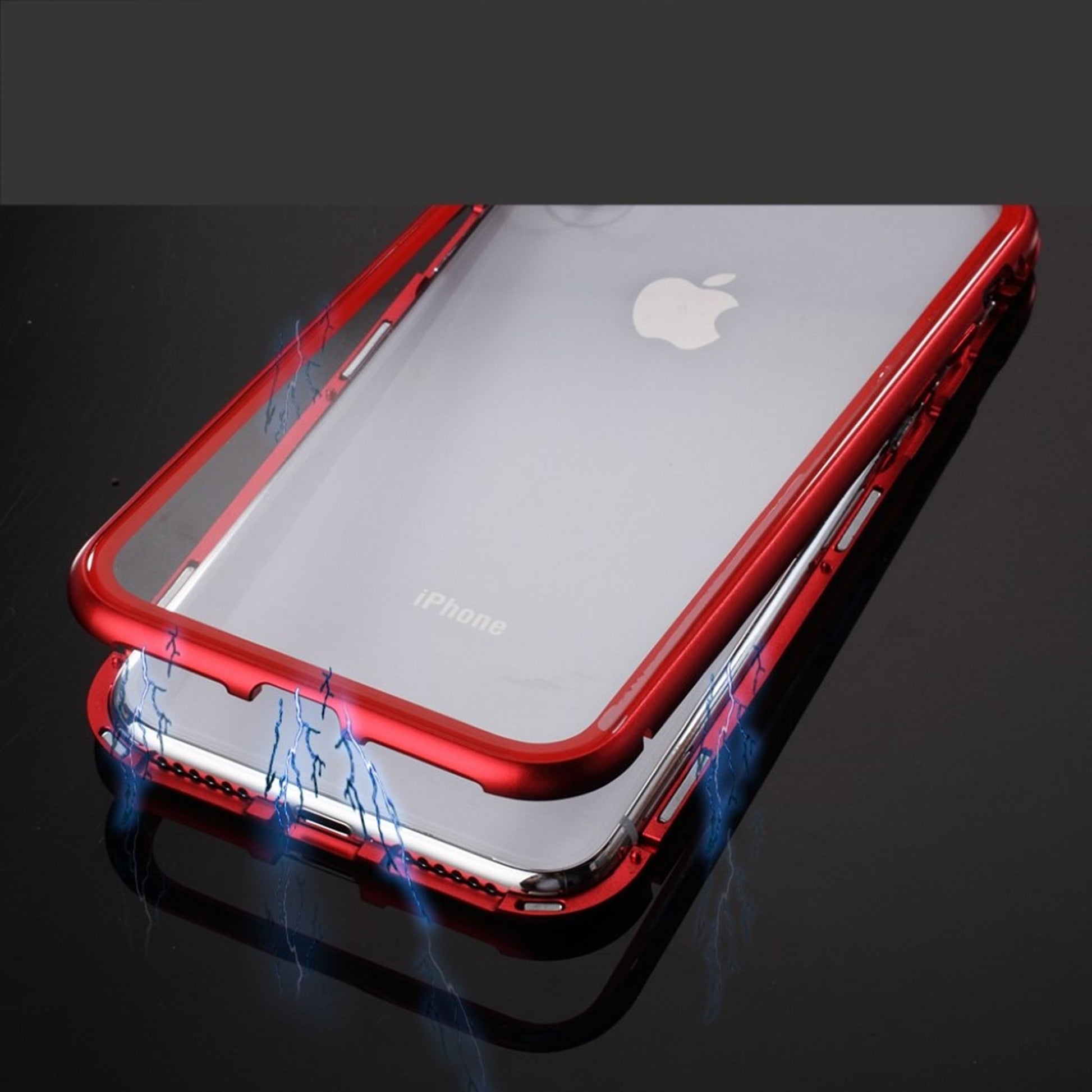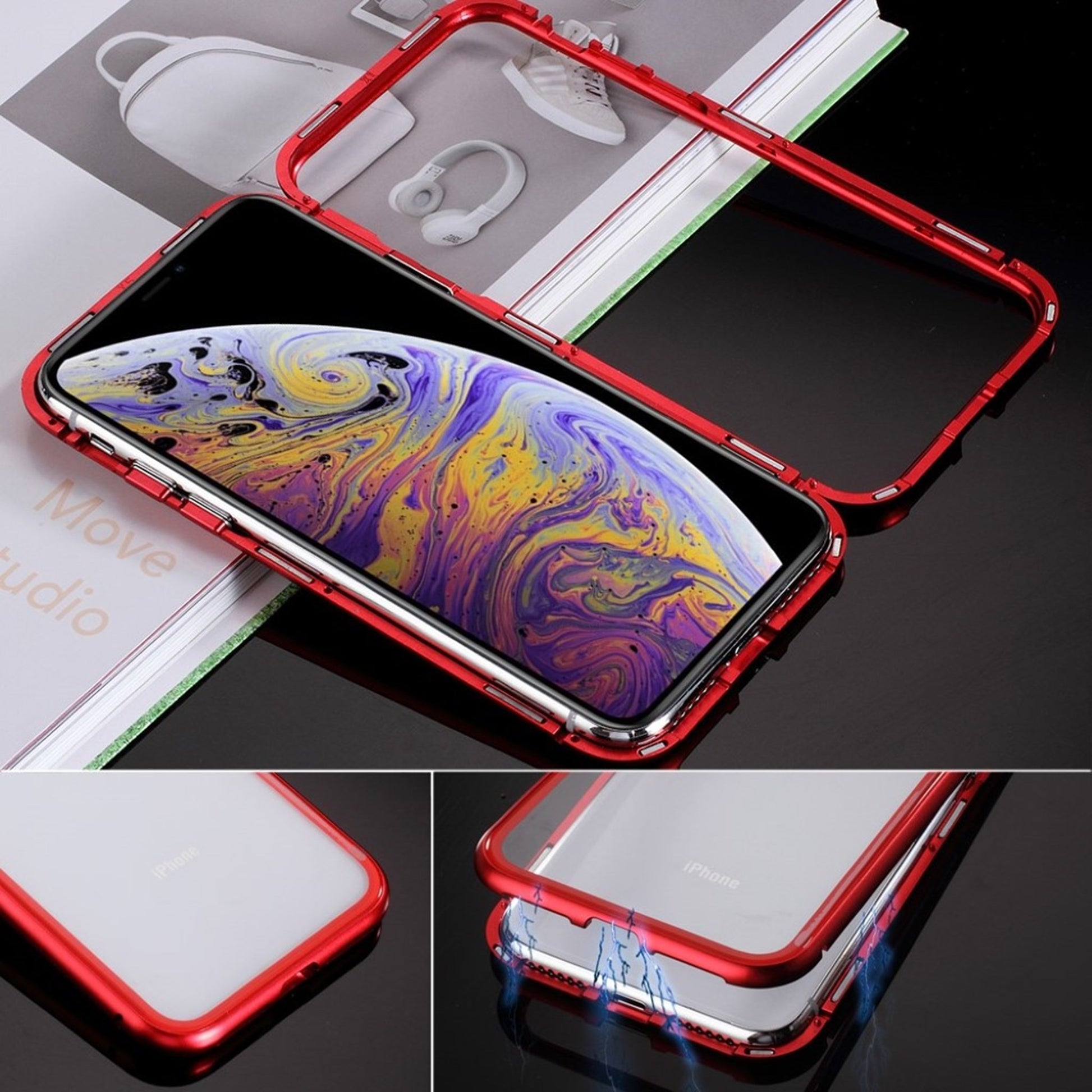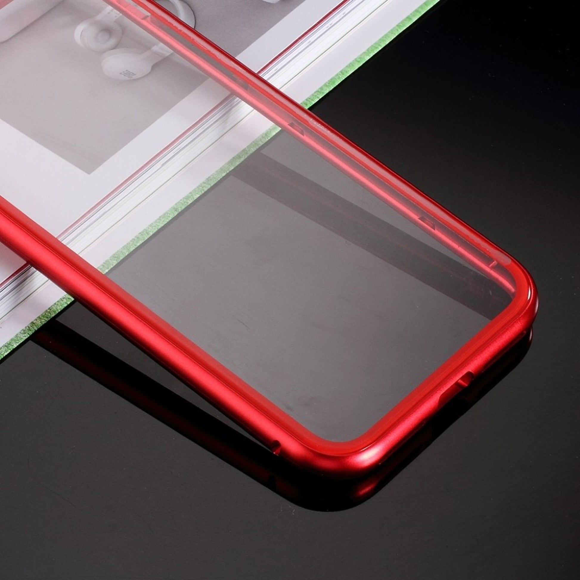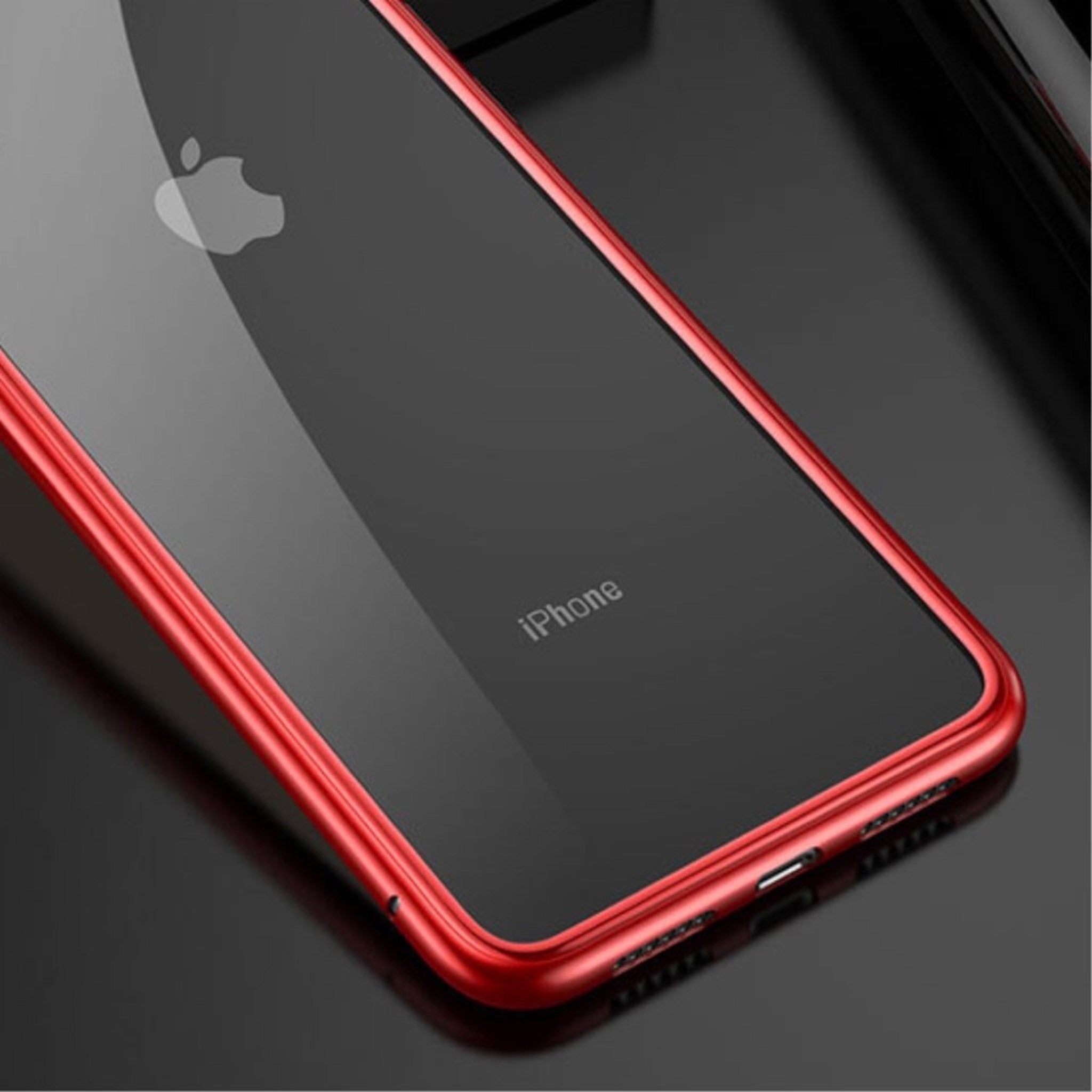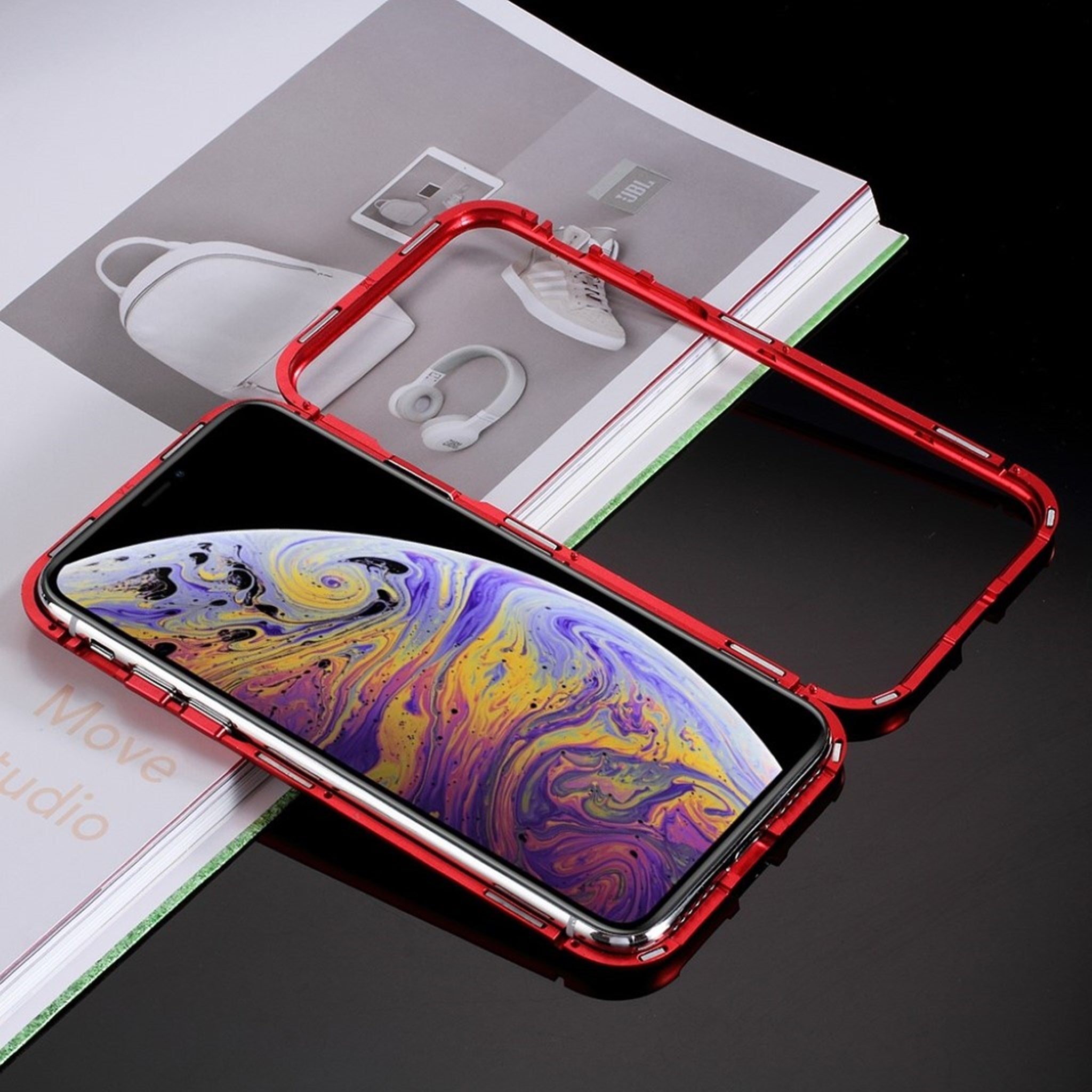 Etui ze szkła hartowanego z metalową ramką do iPhone'a Xr - Czerwone