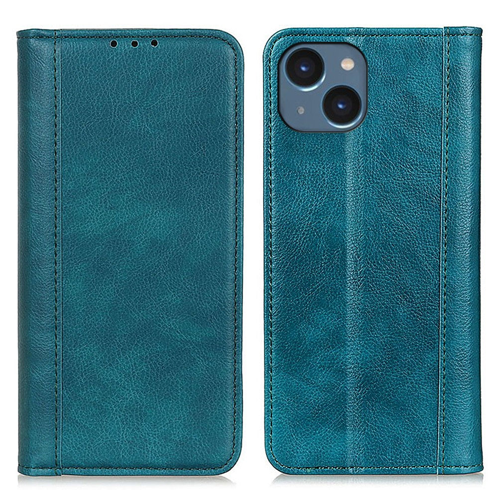 Genuine leather case with magnetic closure for iPhone 15 Plus - Green