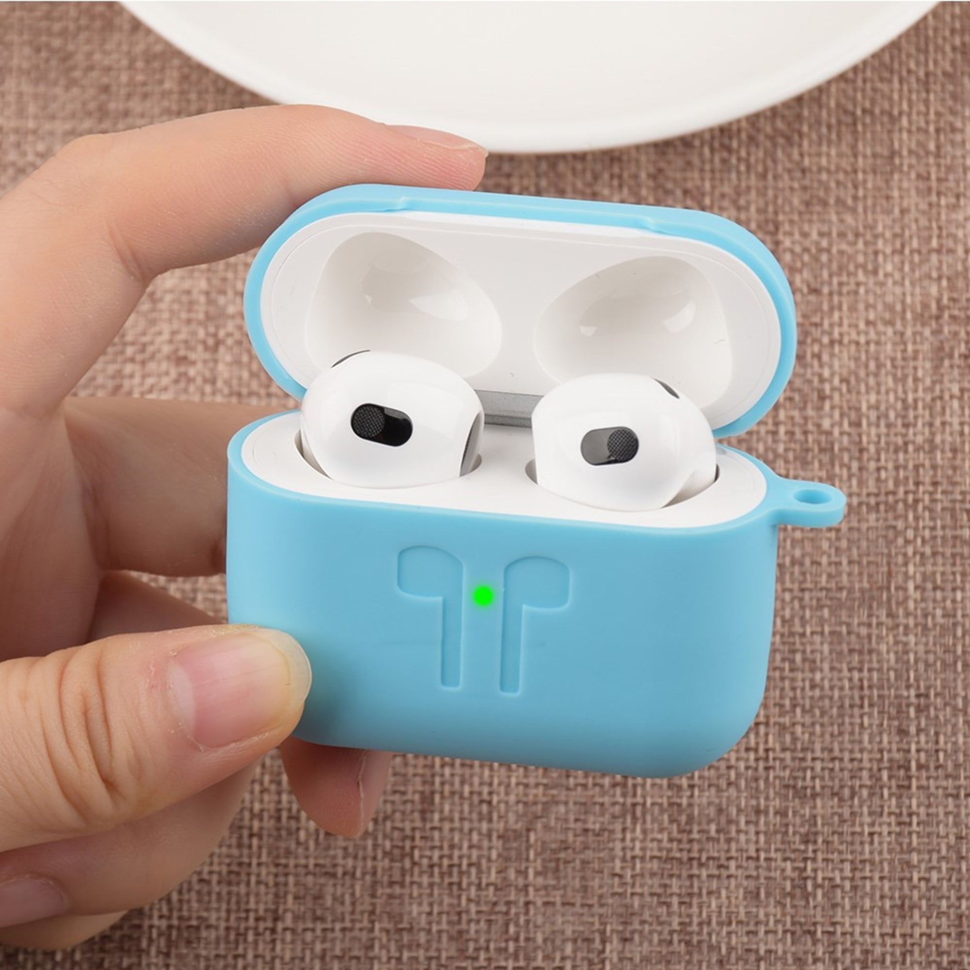 Grawerowane silikonowe etui na słuchawki AirPods 3 z karabińczykiem - Sky Blue