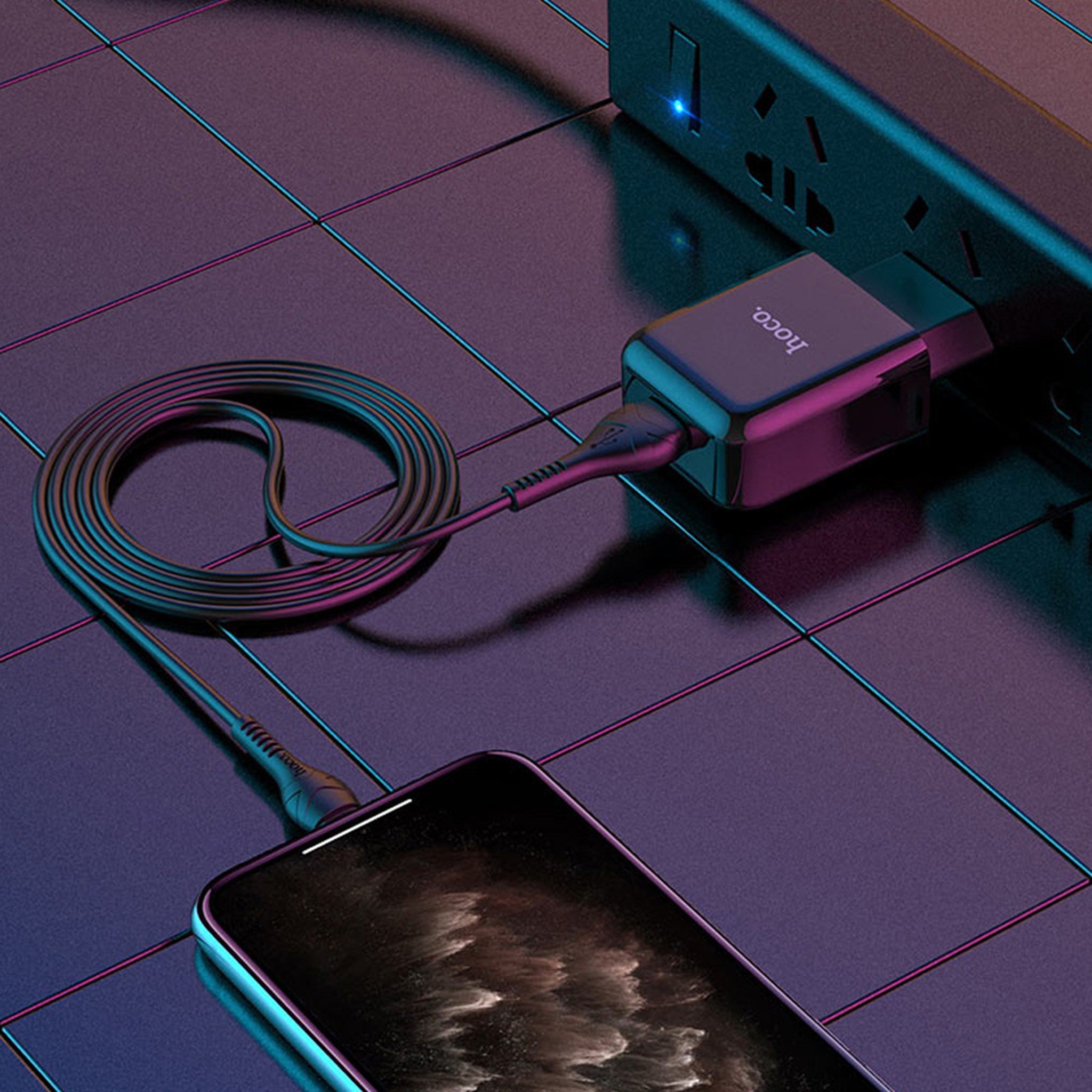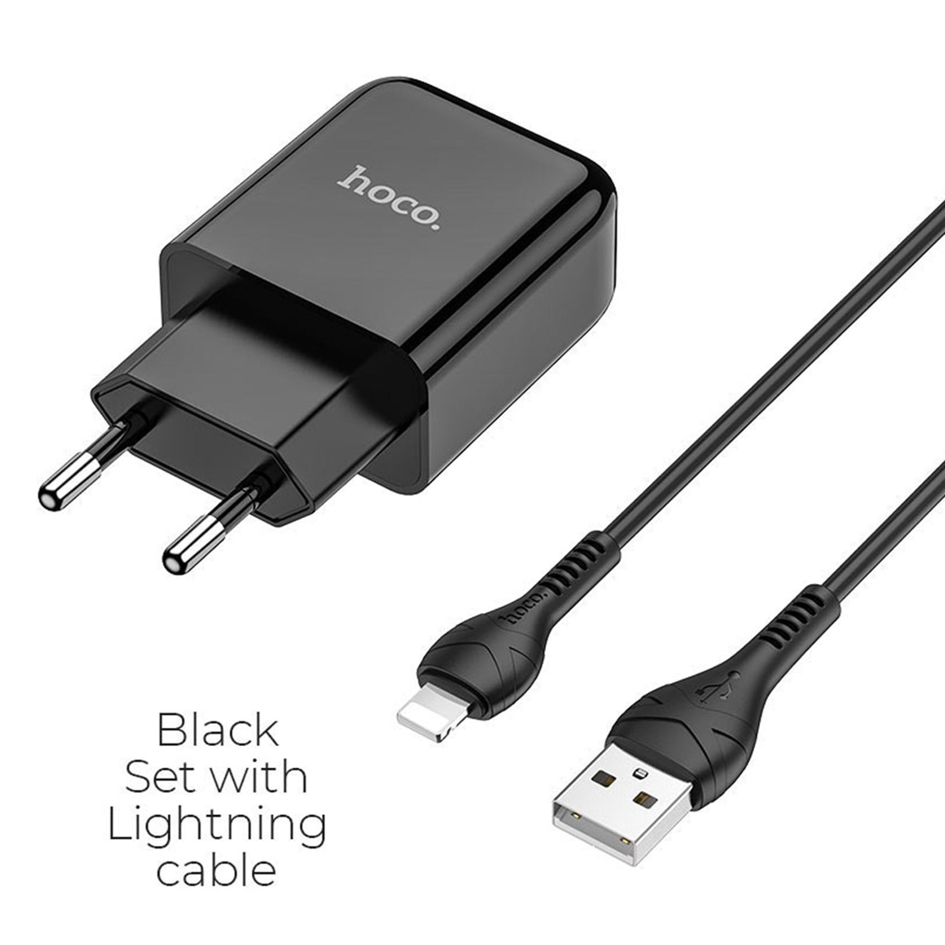 Zestaw jednoportowej ładowarki HOCO N2 Vigour (Lightning) (UE) - black