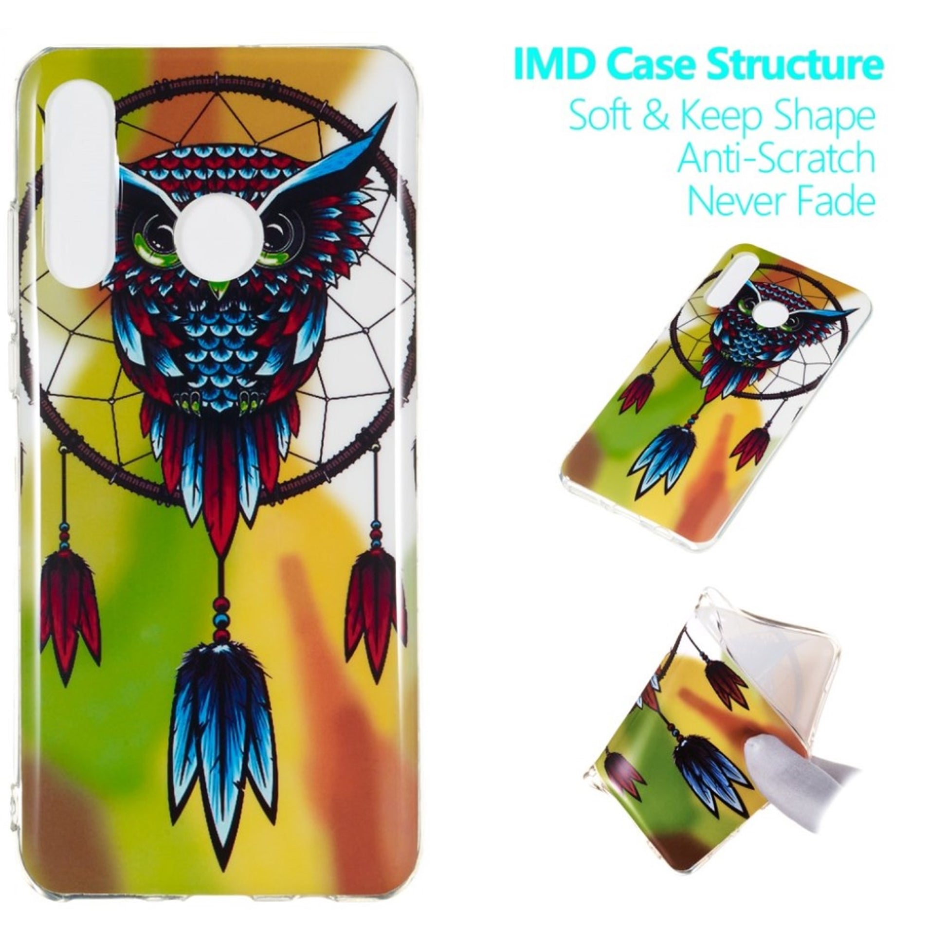Huawei P30 Lite Pimeässä hohtava suojakotelo - Łapacz Snów Sowy
