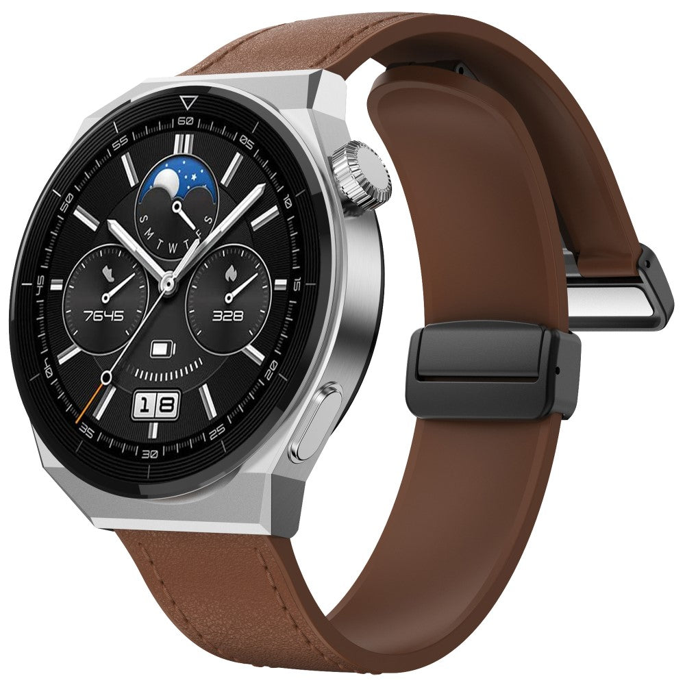 Huawei Watch GT 3 42mm / GT 3 Pro 43mm Pasek do zegarka 20 mm pokryty skórą silikonowy pasek z magnetyczną klamrą - Ciemnobrązowy