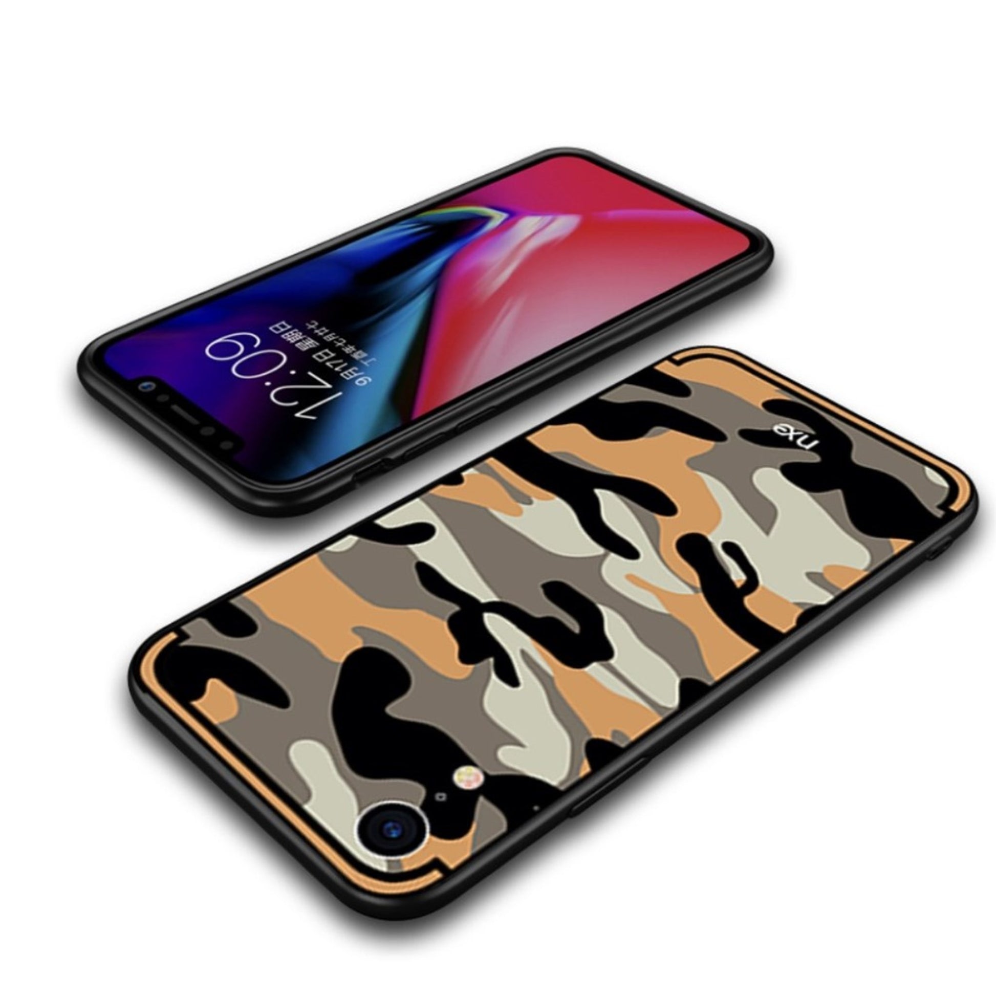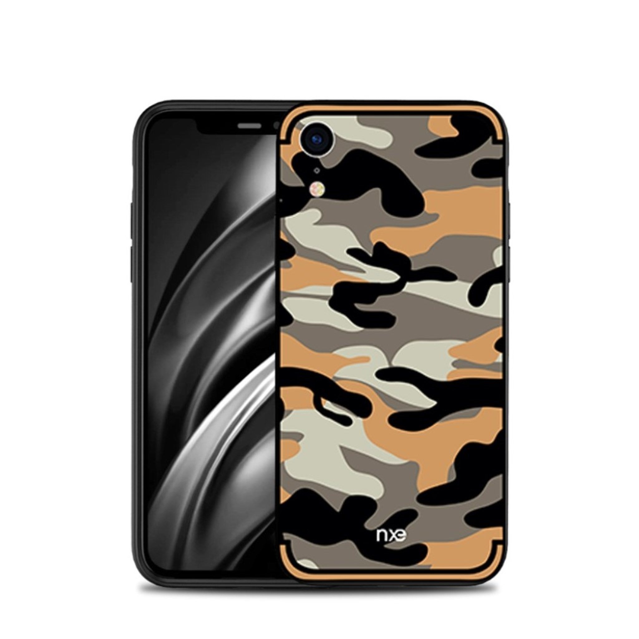 Hybrydowe etui NXE iPhone Xr z wzorem kamuflażu - Pomarańczowe