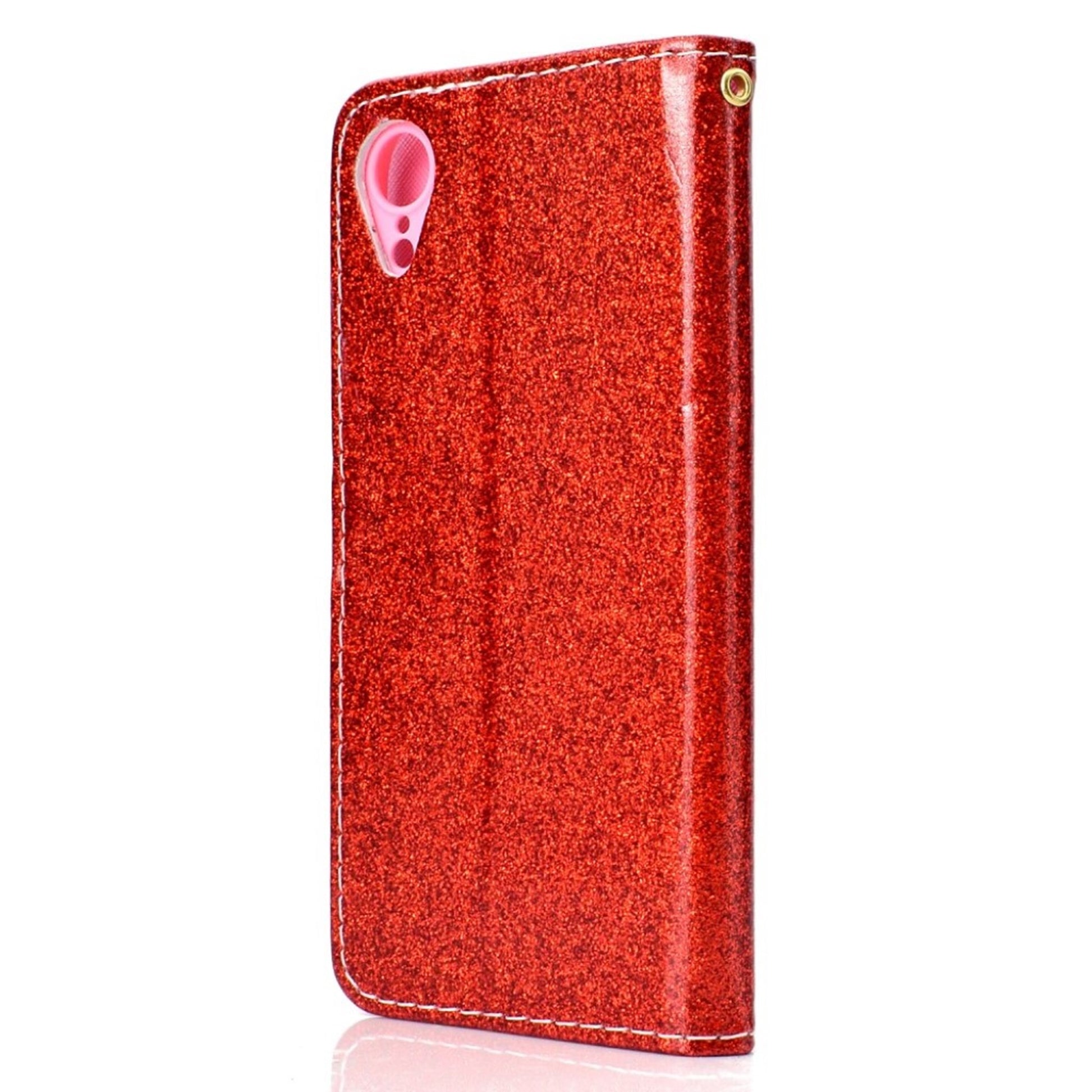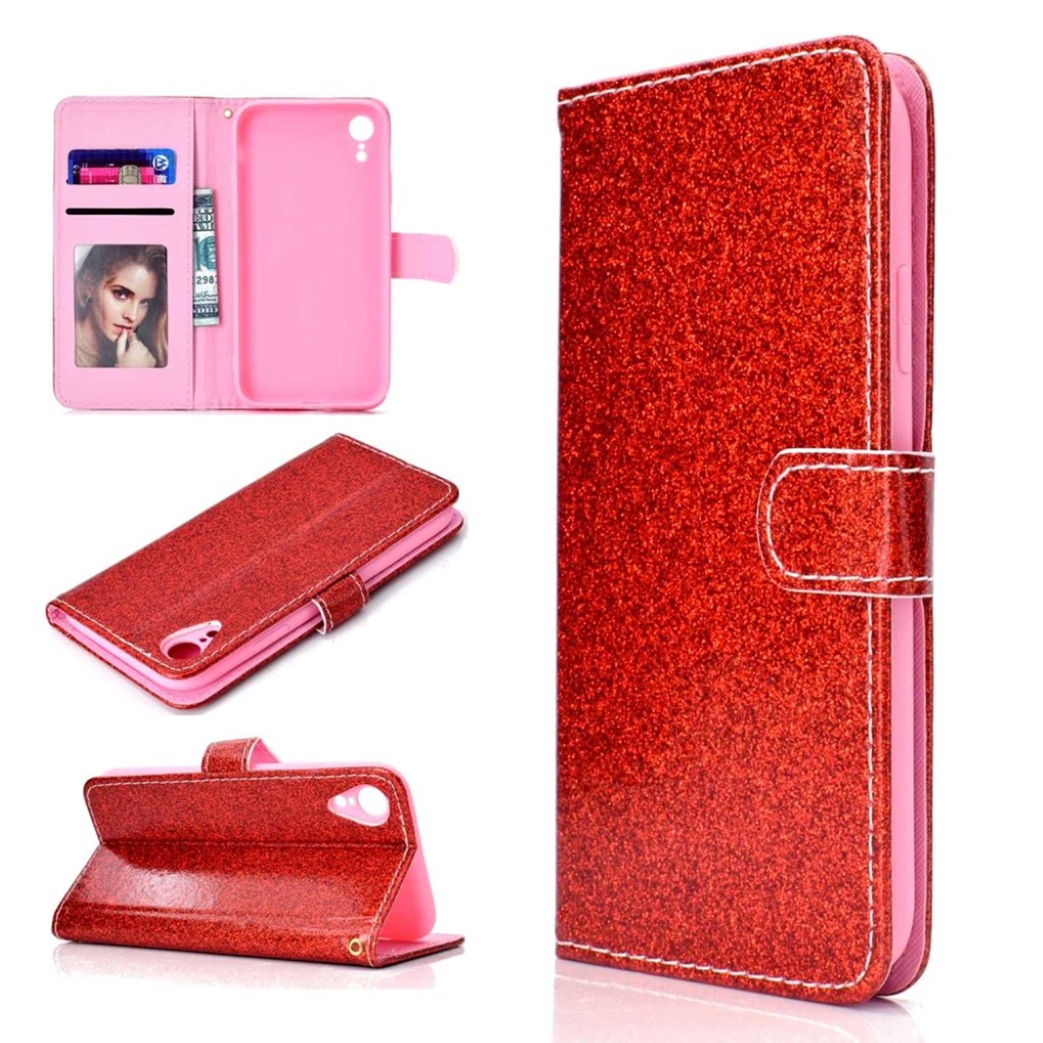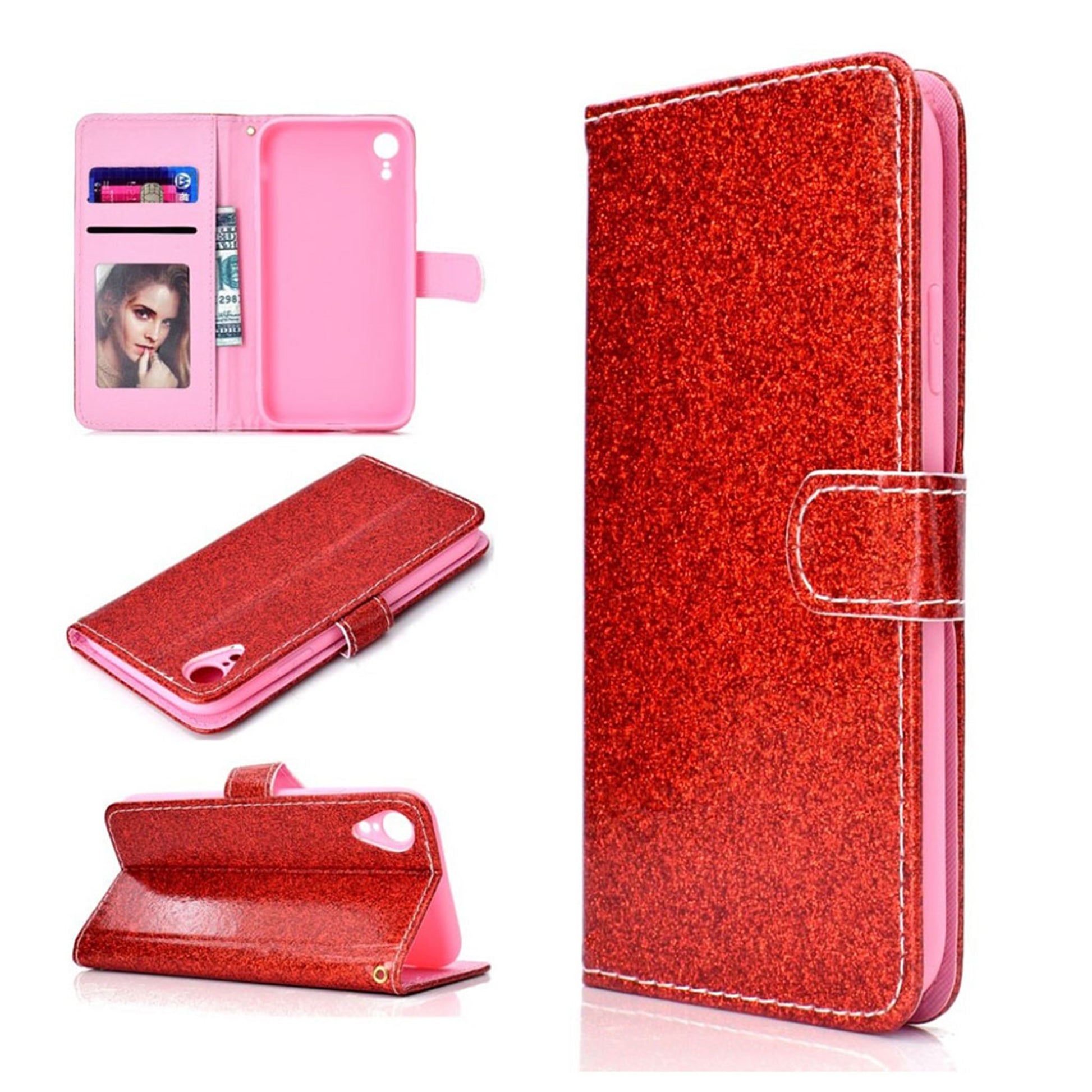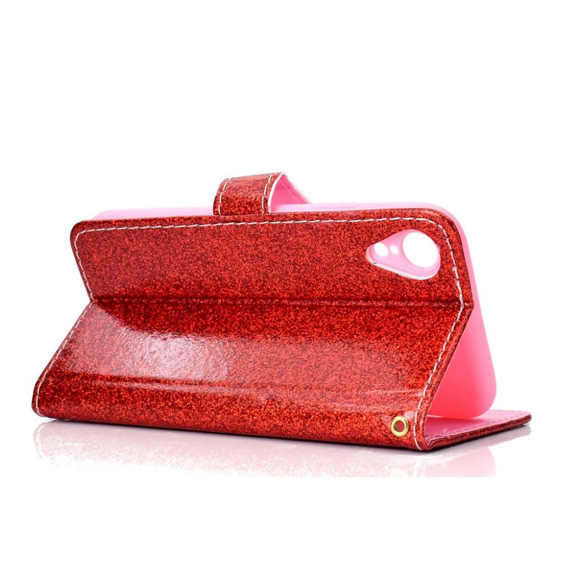 iPhone Xr flash powder skórzane etui z klapką - Czerwony