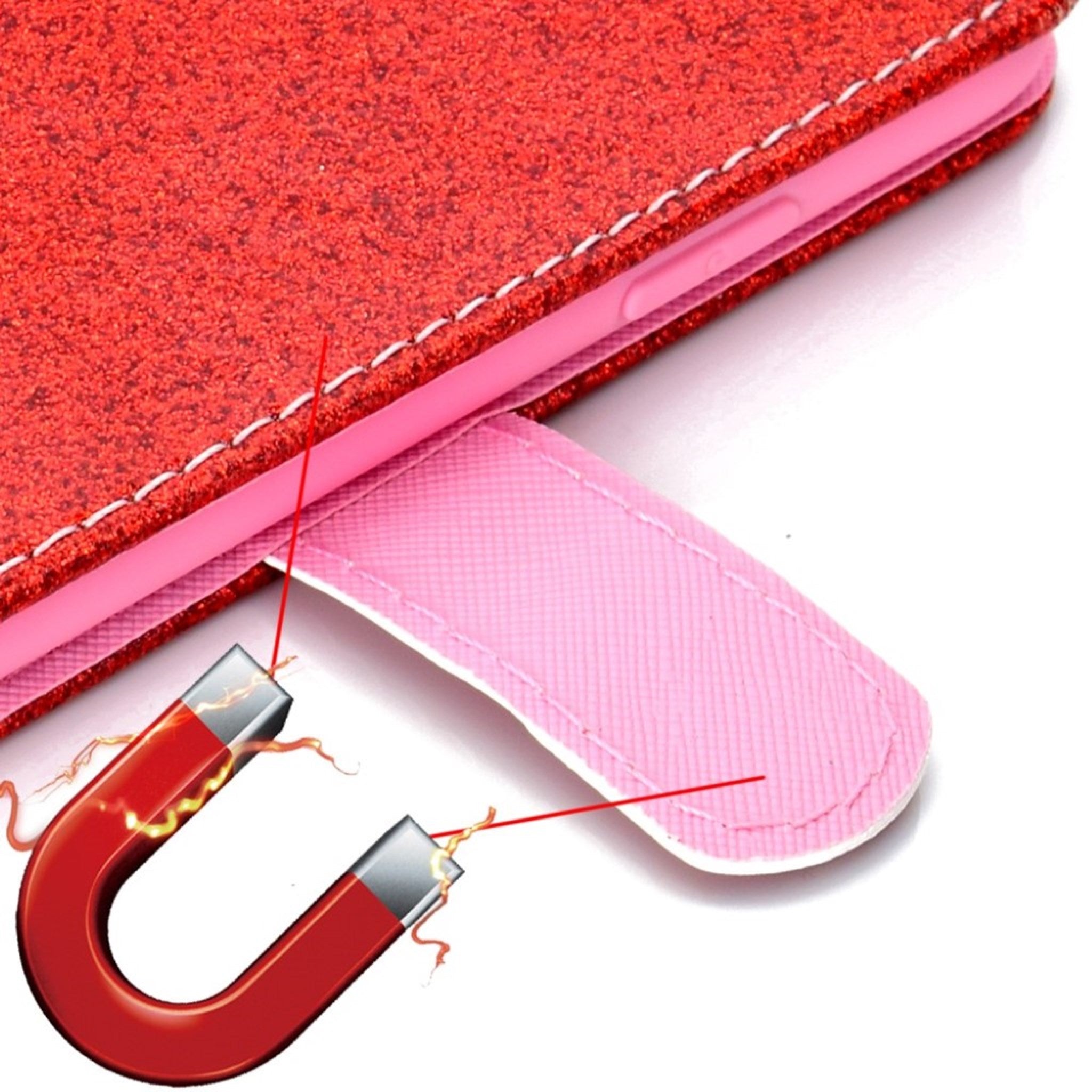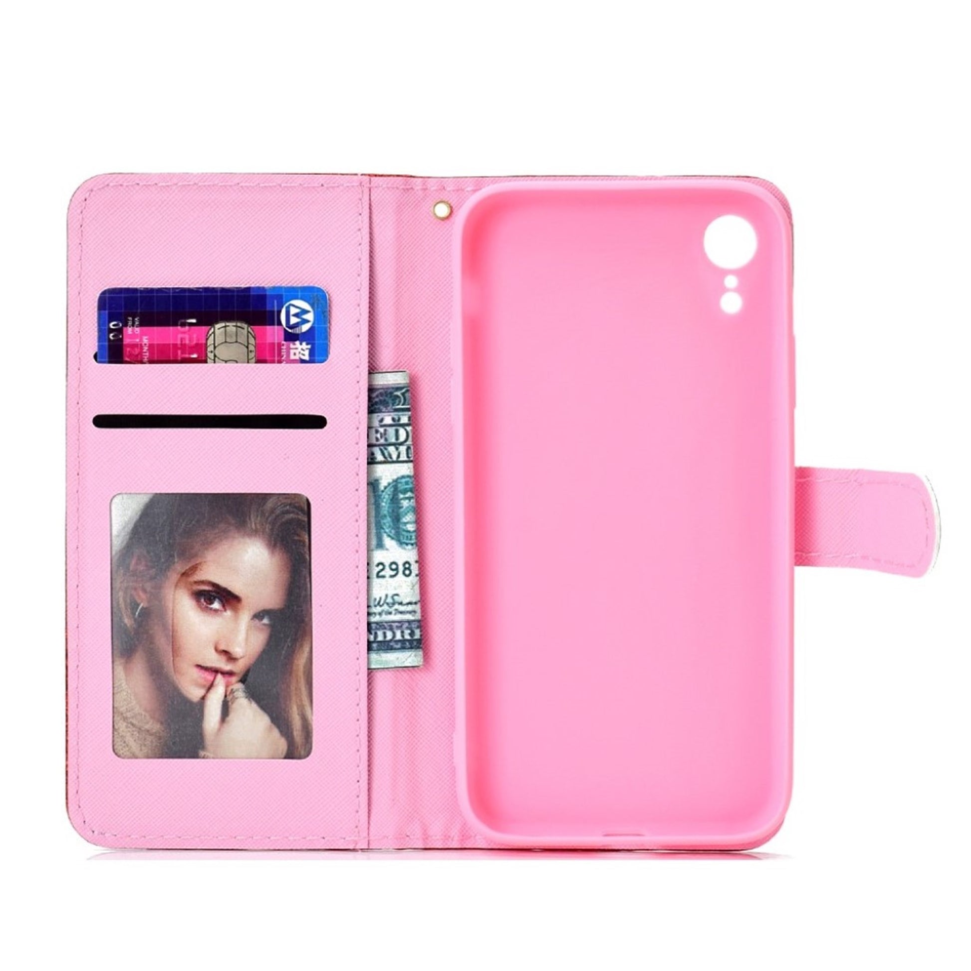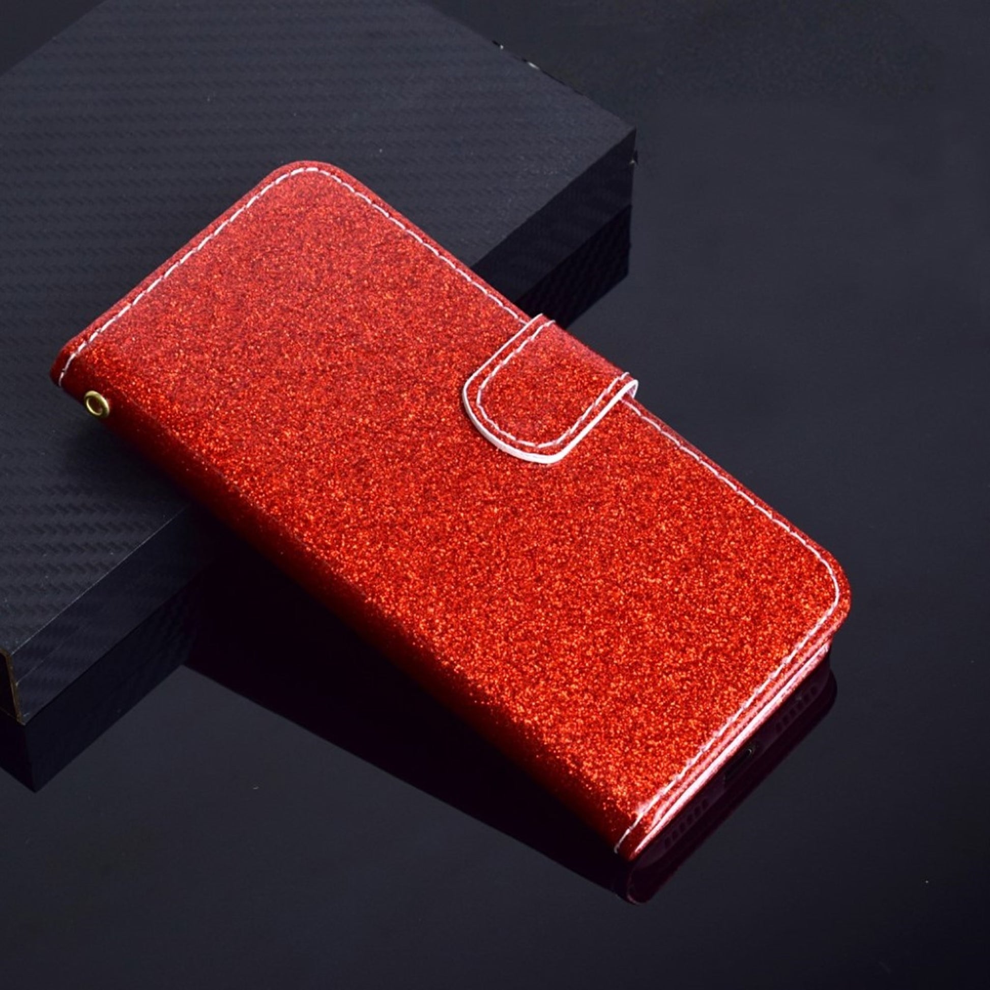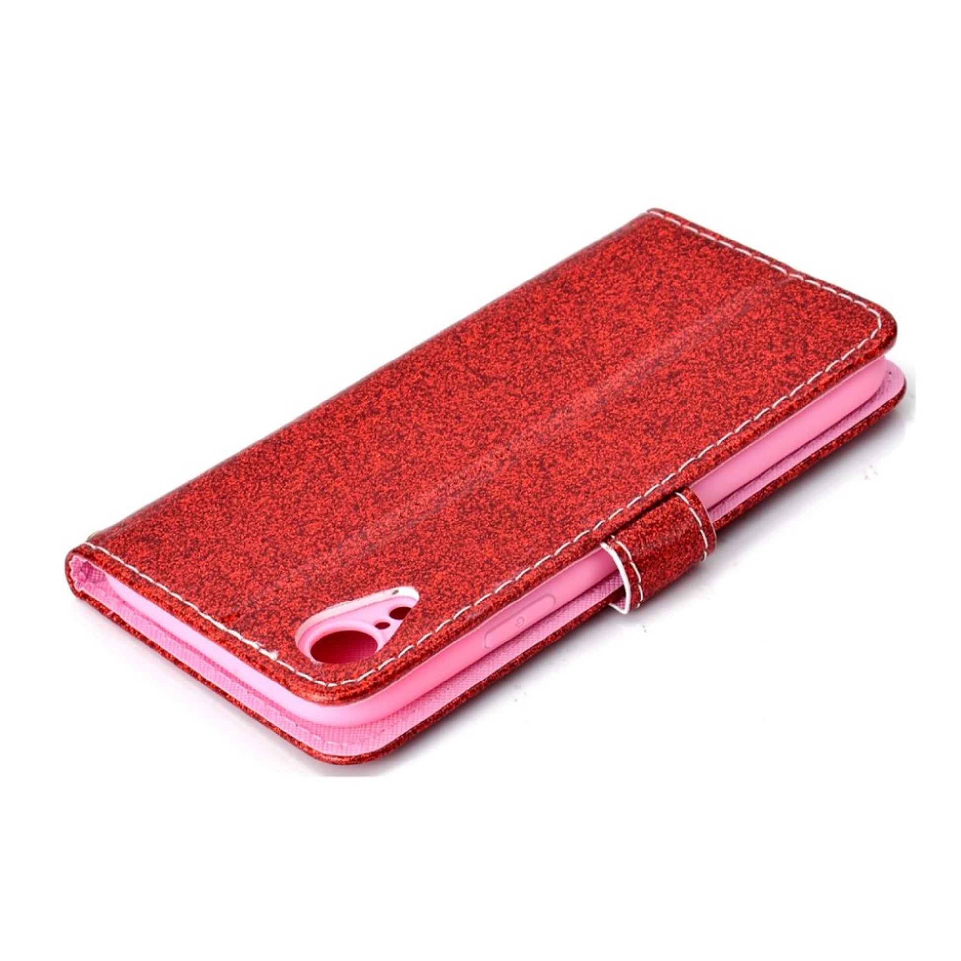 iPhone Xr flash powder skórzane etui z klapką - Czerwony
