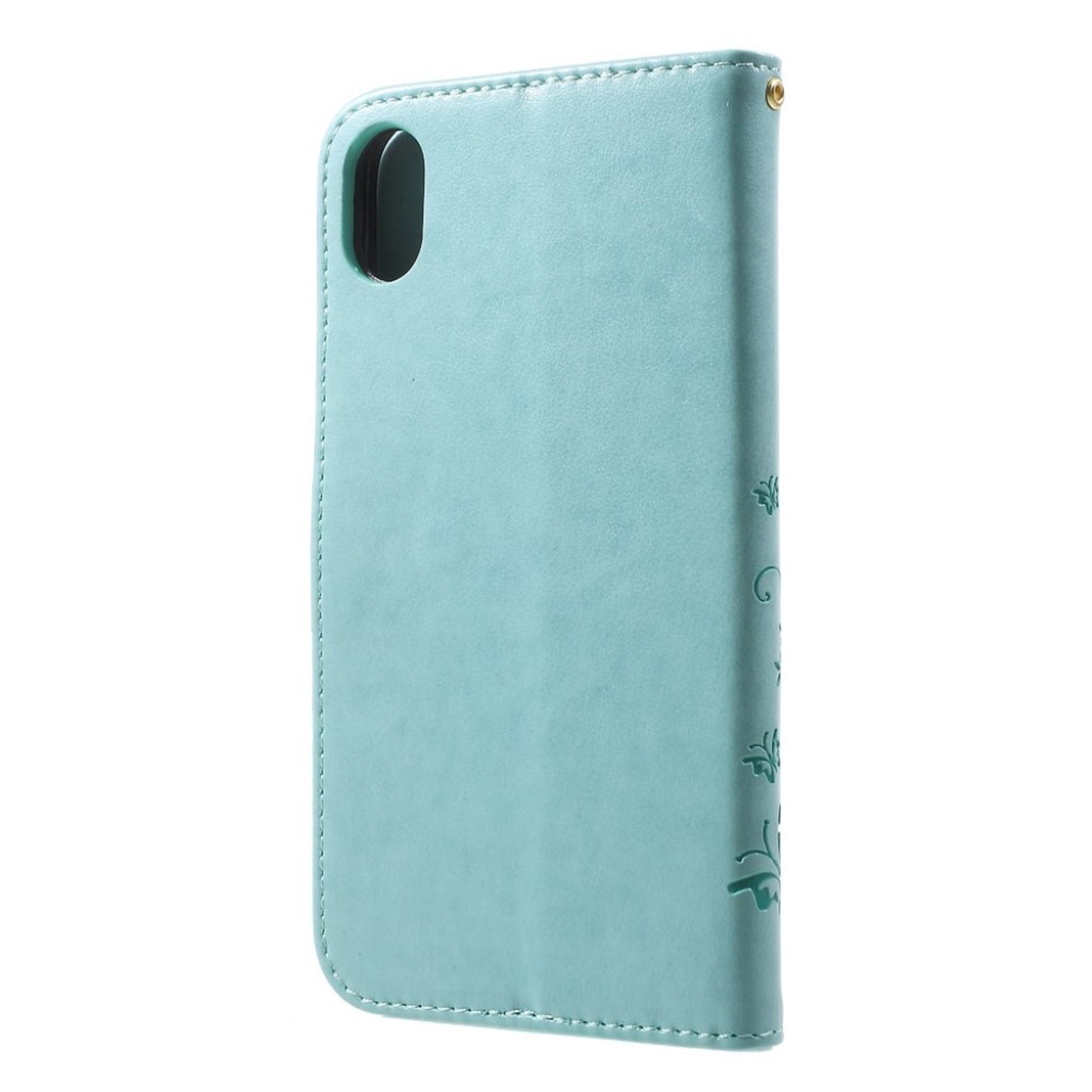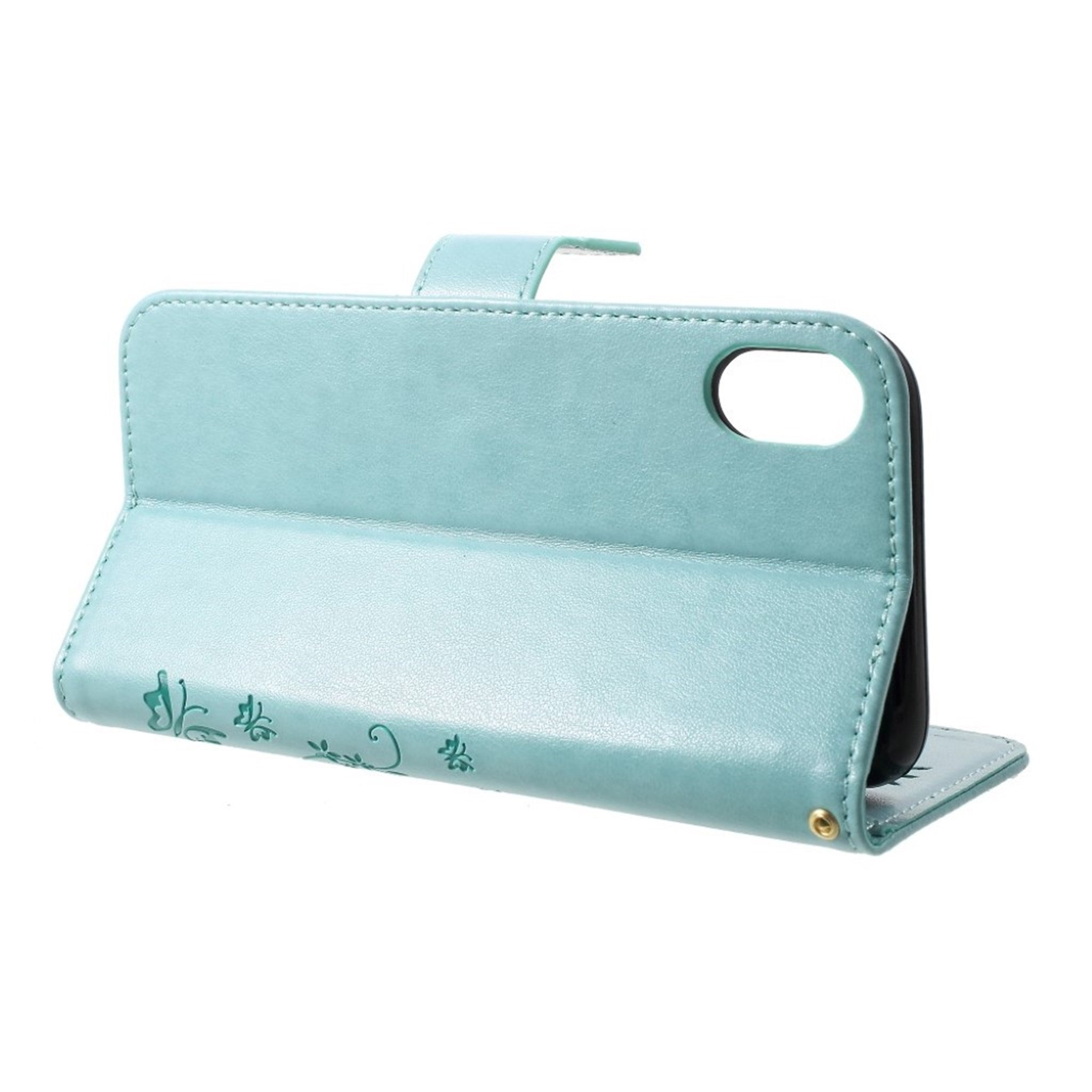 iPhone Xr jest wyposażony w syntetyczną skórkę z dodatkowym uchwytem i blomsterem - Cyan