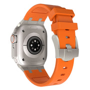 KALEBO do Apple Watch Ultra 2 Ultra 49 mm / 9 8 7 45 mm / 6 5 4 SE (2023) SE (2022) SE 44 mm / 3 2 1 42 mm Płynny silikonowy pasek - Tytan + Pomarańczowy