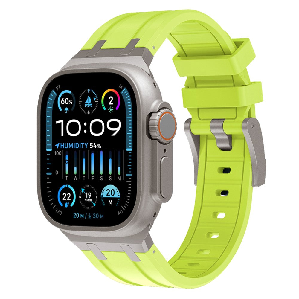 KALEBO do Apple Watch Ultra 2 Ultra 49mm / 9 8 7 45mm / 6 5 4 SE (2023) SE (2022) SE 44mm / 3 2 1 42mm Płynny silikonowy pasek - Tytan + Fluorescencyjna Zieleń