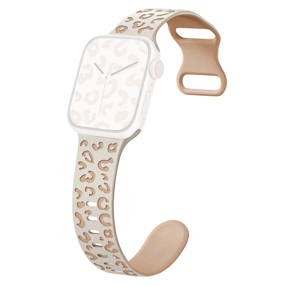 KALEBOL Leopard Silicone Band Apple Watch Series 10 42 mm Dual Color Strap - Starlight + Milk Tea