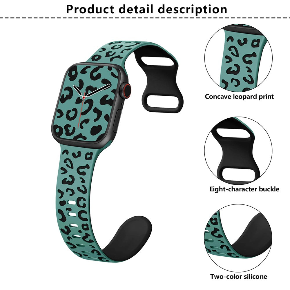 KALEBOL Leopard Silicone Band Apple Watch Series 10 42mm Dual Color Strap - Black + Blue