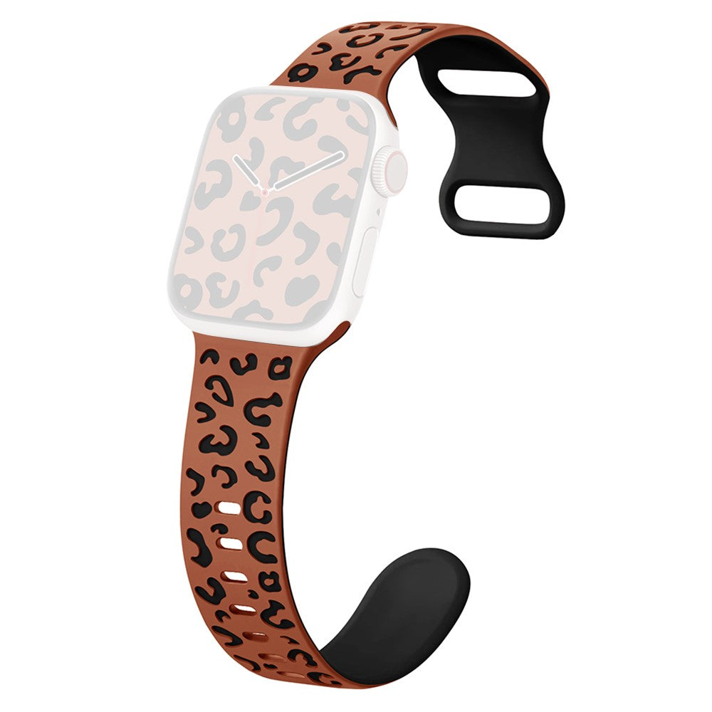 KALEBOL Leopard Silicone Band Apple Watch Series 10 42mm Dual Color Strap - Brown + Black