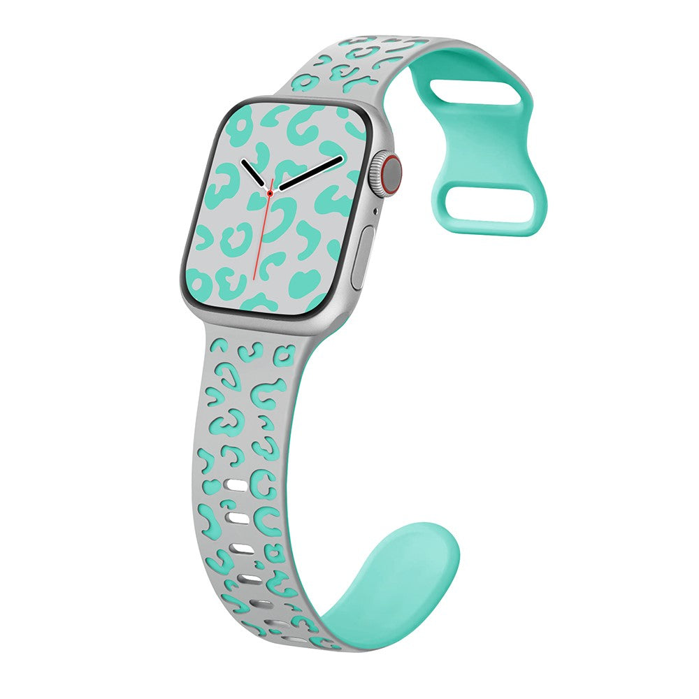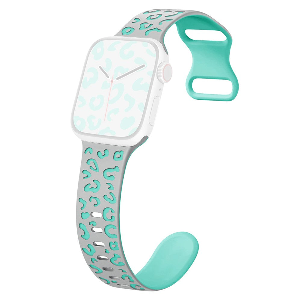 KALEBOL Leopard Silicone Band Apple Watch Series 10 42mm Dual Color Strap - Grey + Cyan