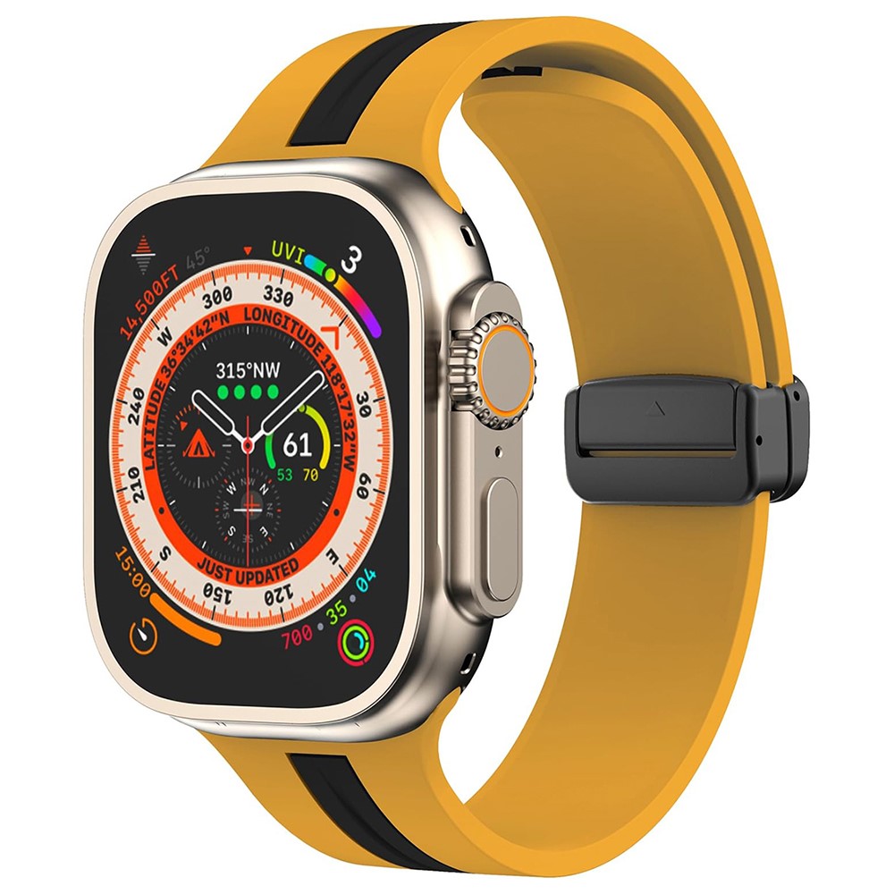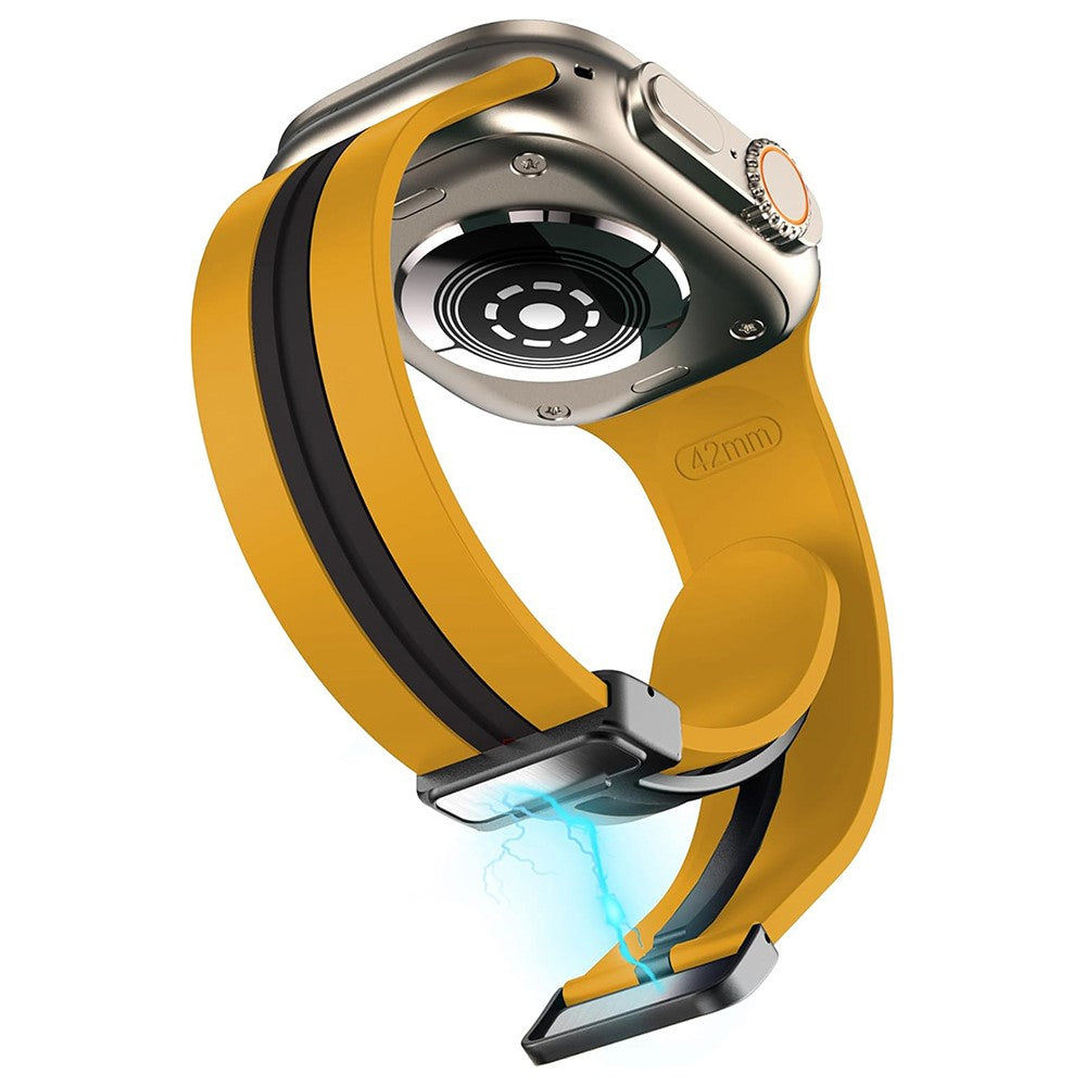 KALEBOL Magnetyczny pasek silikonowy w paski do zegarka Apple Watch Series 41 mm - 40 mm - 38 mm - Żółty + Czarny