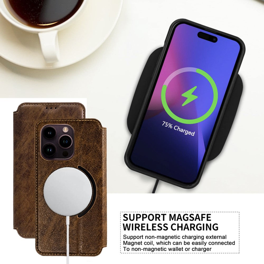 Kompatybilny z MagSafe brązowy matowy pokrowiec na telefon z portfelem dla iPhone'a 15 Plus
