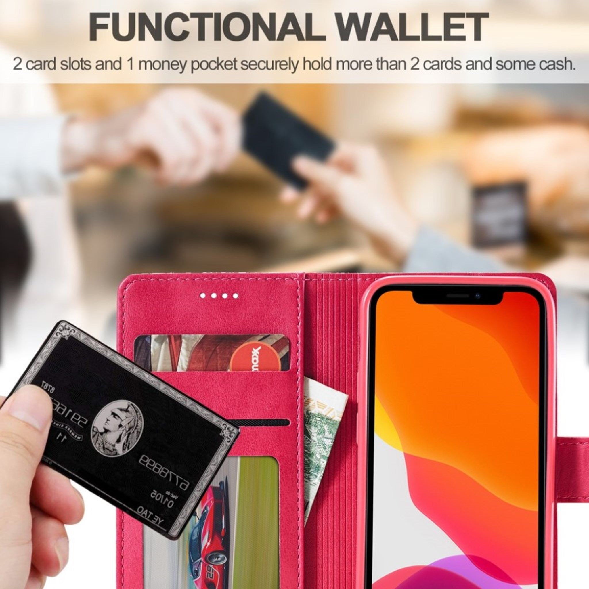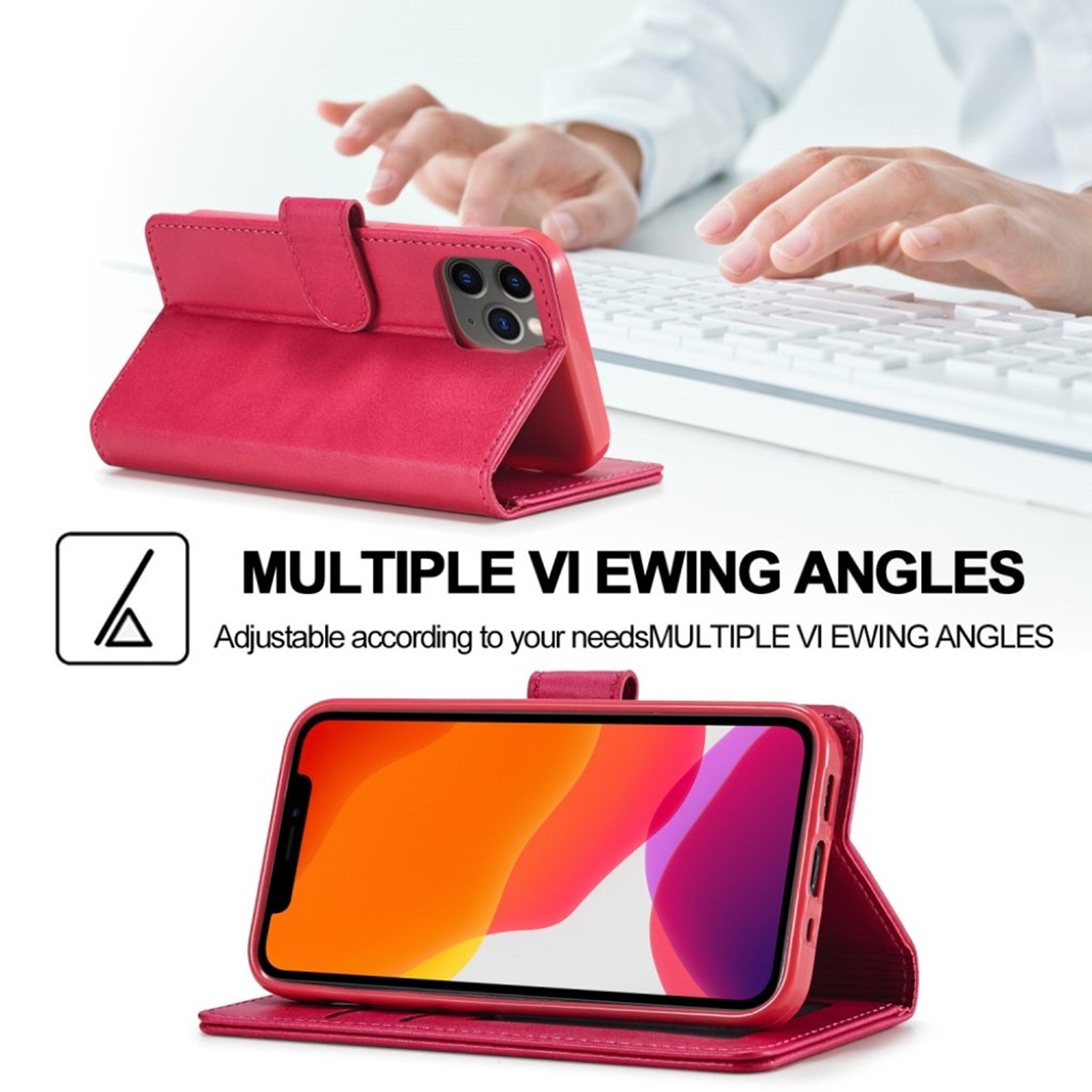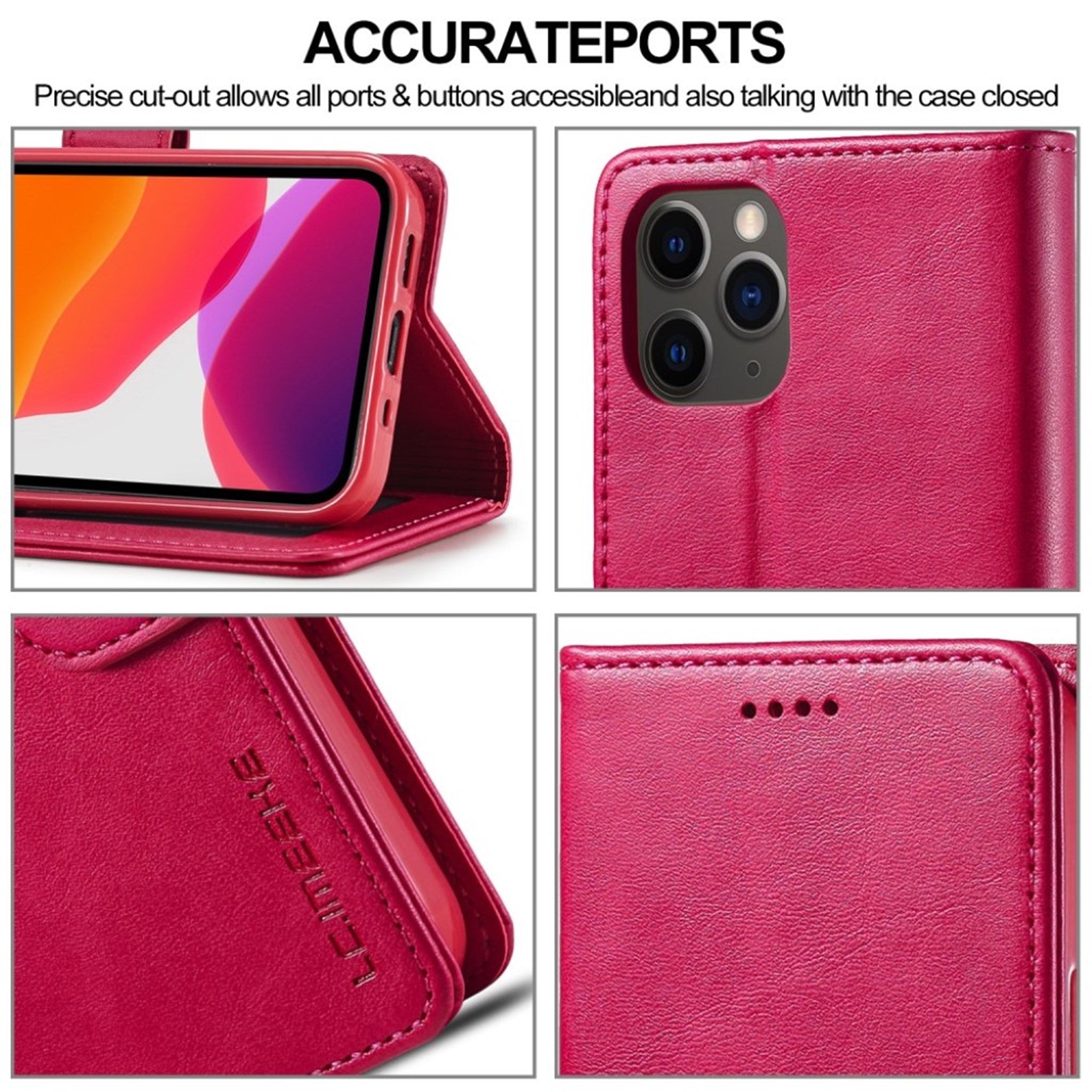 LC.IMEEKE iPhone 12 / 12 Pro Flip Case - Czerwony